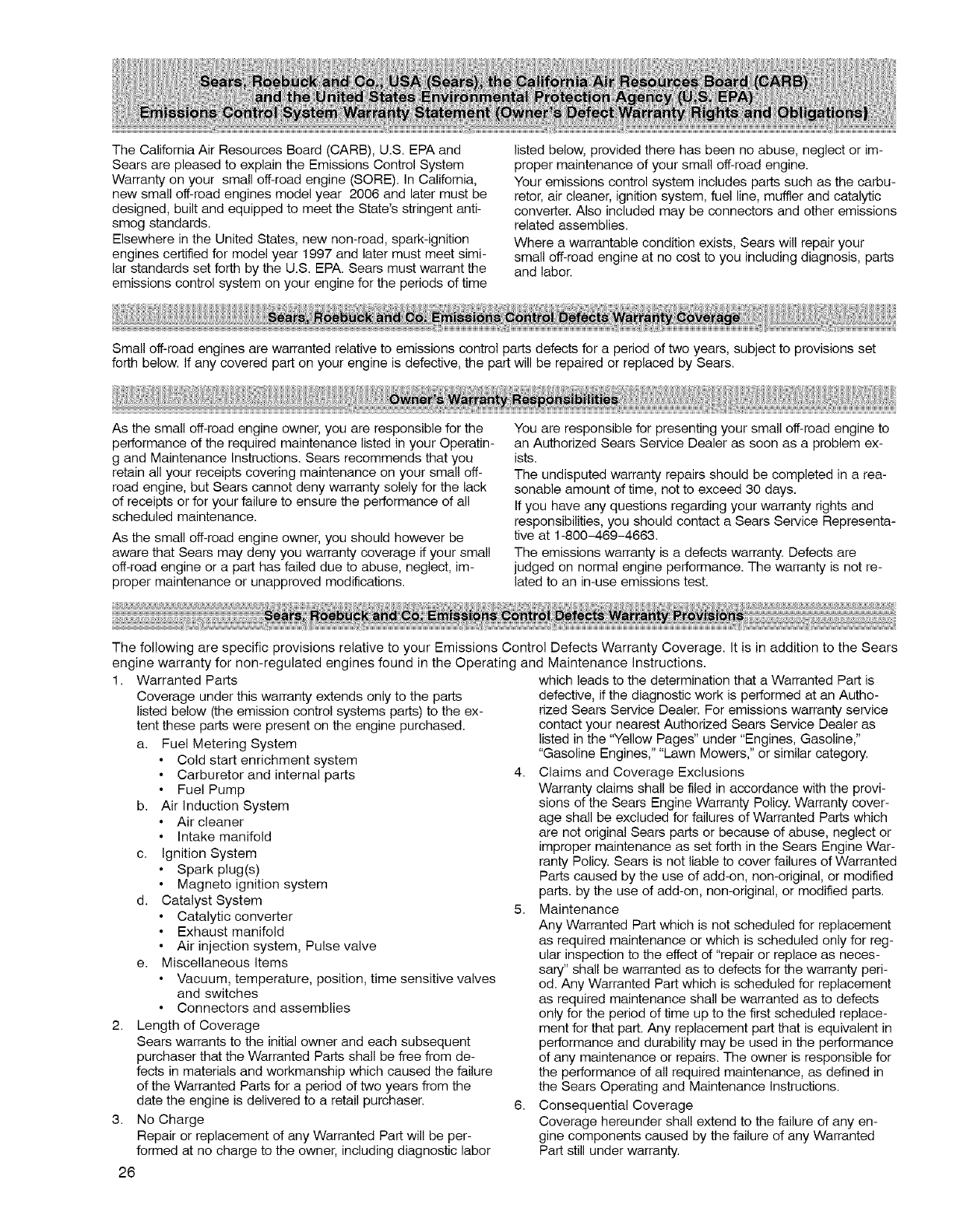 date of purchase, return it to any Sears store, Sears Parts & Repair Center, or other Crafts-