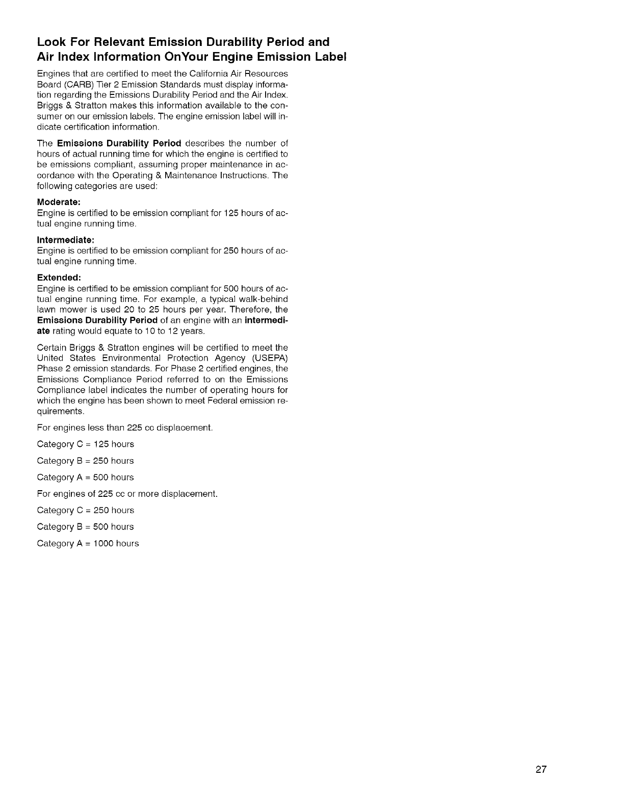 Ciertos motores Briggs & Stratton estarRn certificados por cum-