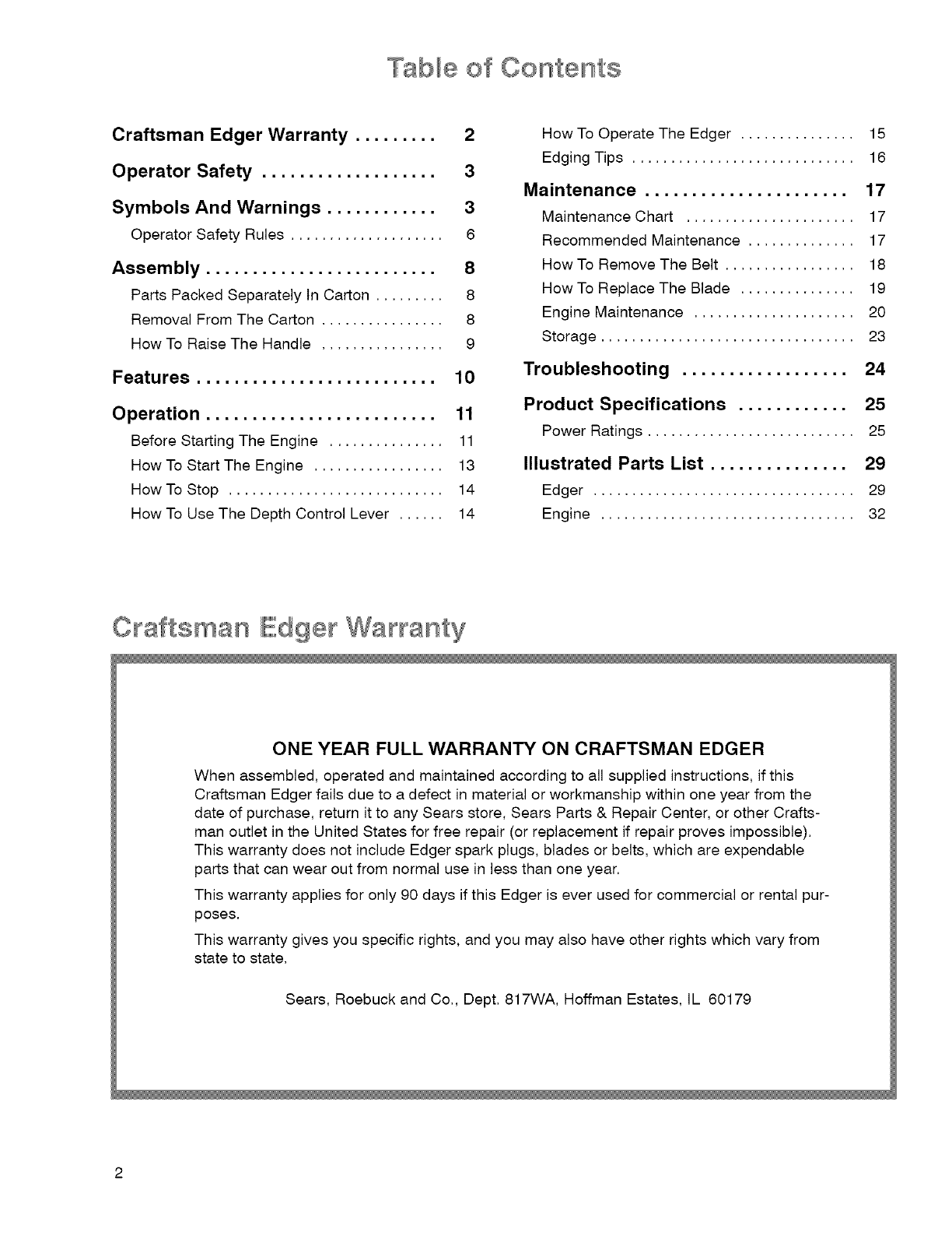 Craftsman Edger Warranty ......... 2