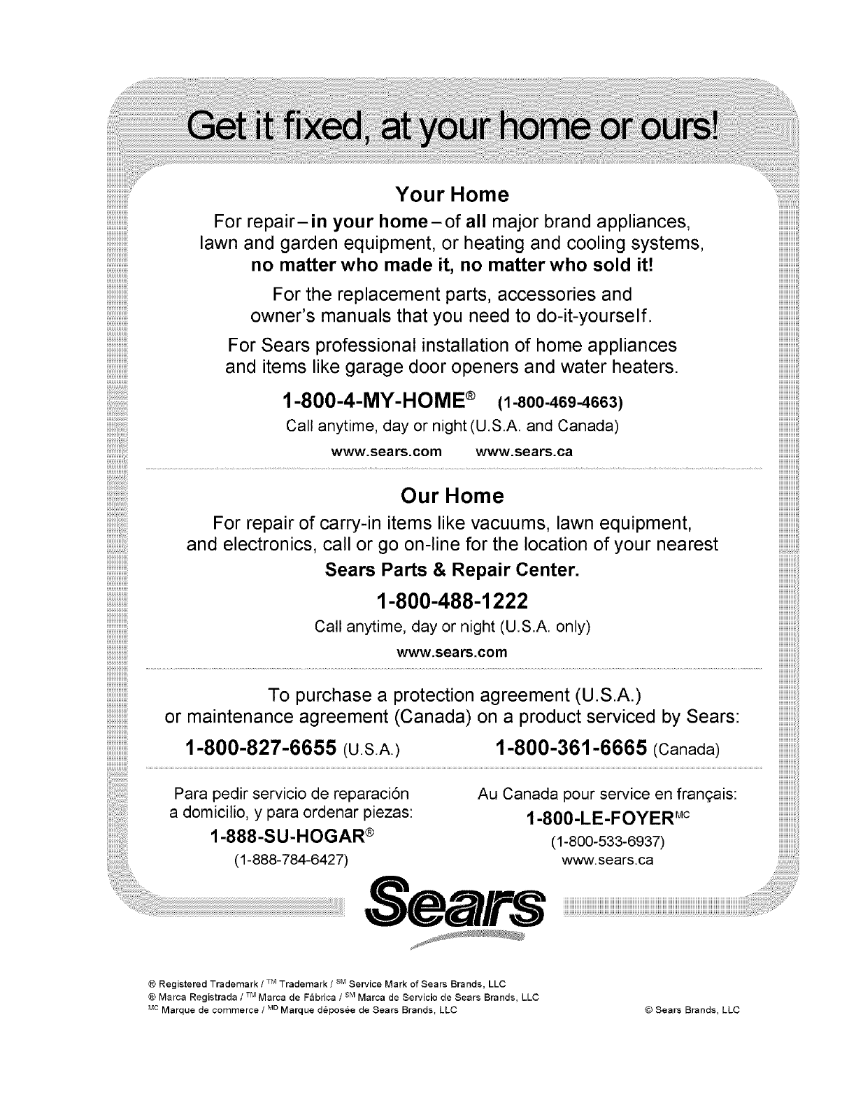 ® Marea Registrada /TMMarea de Fabrica /sM Marca de Servieio de Sears Brands, LLC
