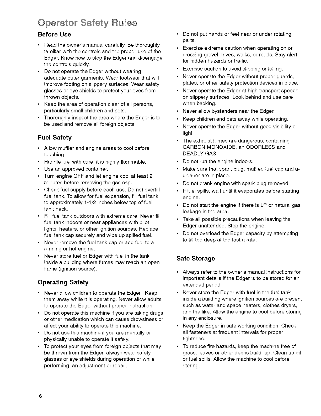 Operator Safety Rules .................... 6