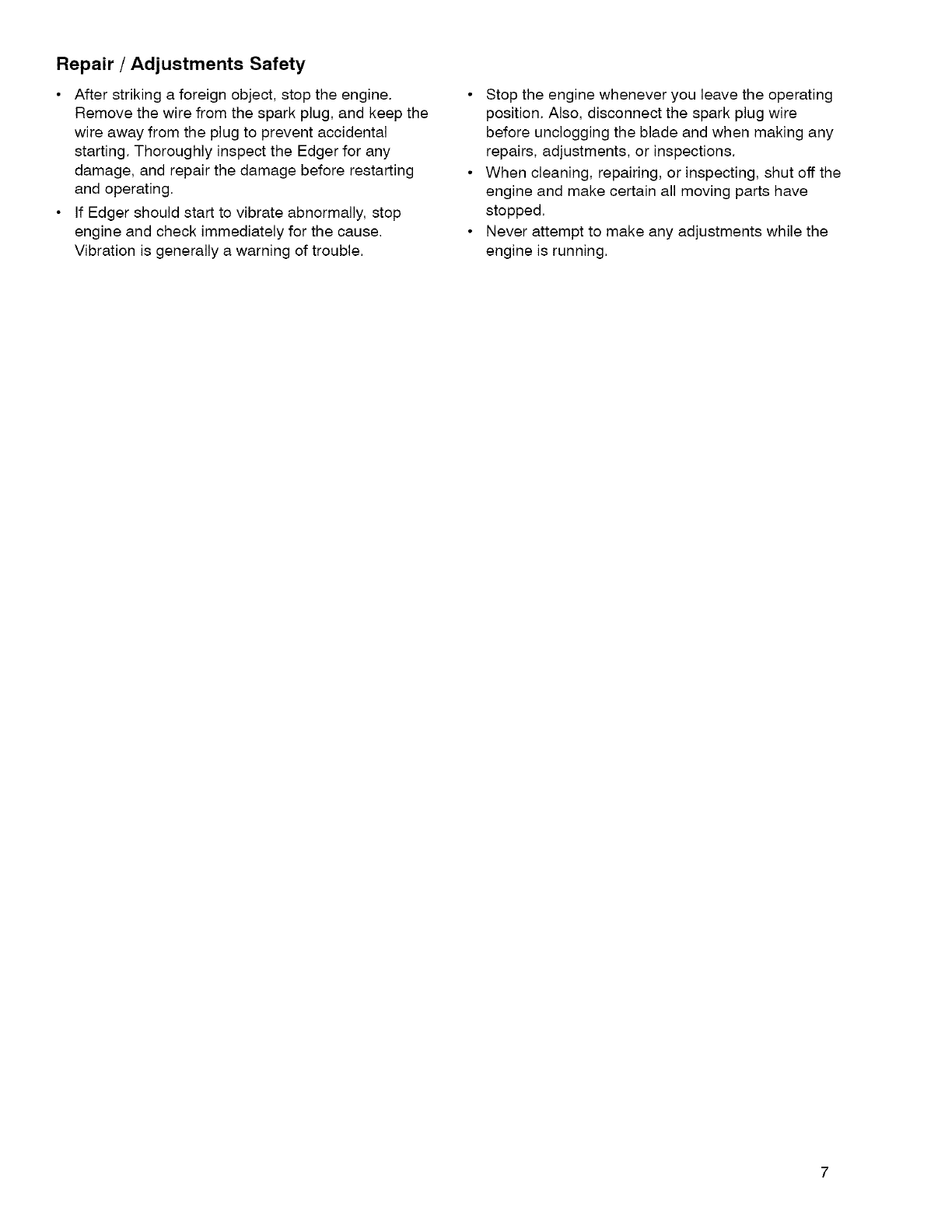 This warranty does not include Edger spark plugs, blades or belts, which are expendable