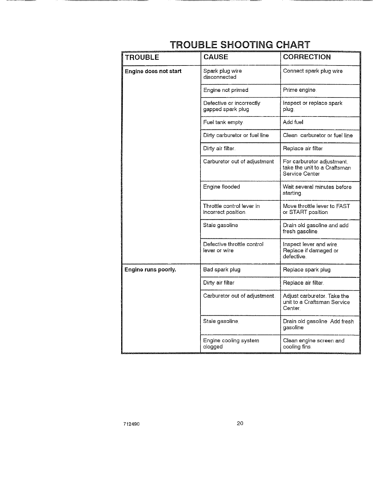 TROUBLE SHOOTING CHART ._ 20