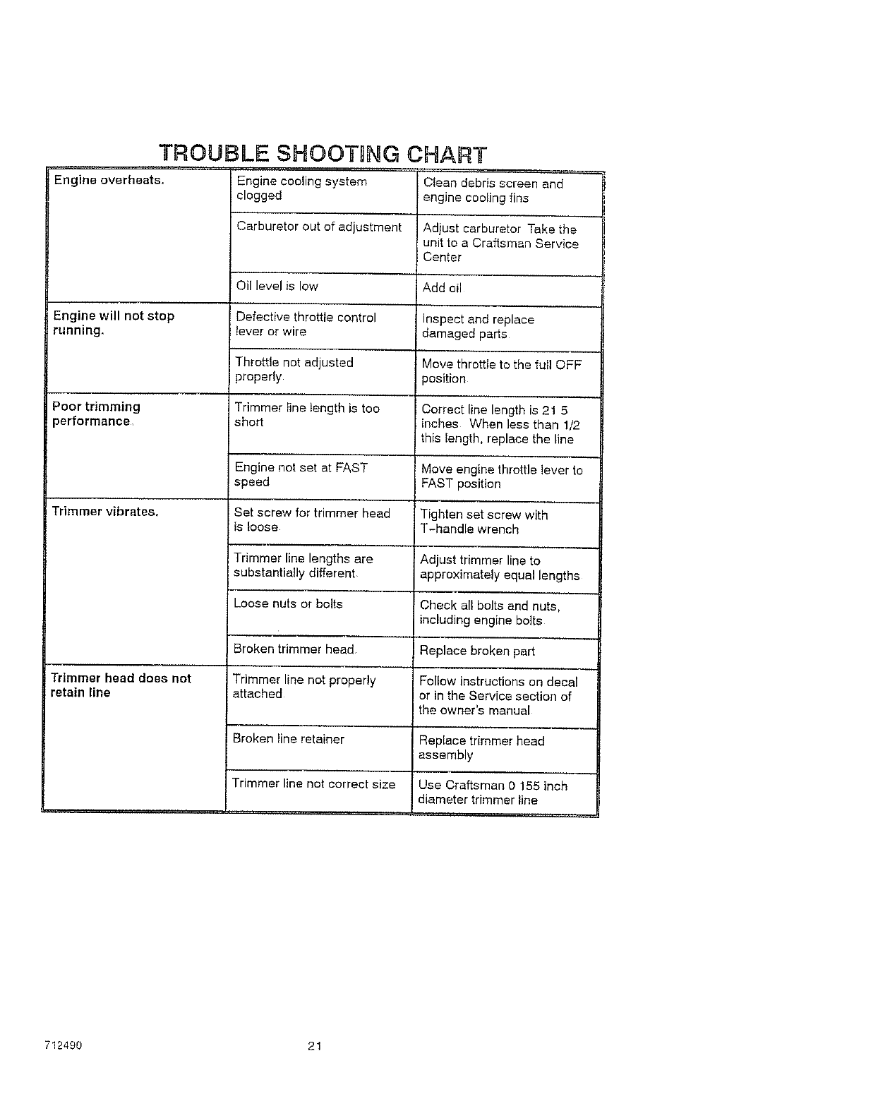 If this Craftsman Weedtrimmer is used for commercial or rental purposes, this warranty ap-