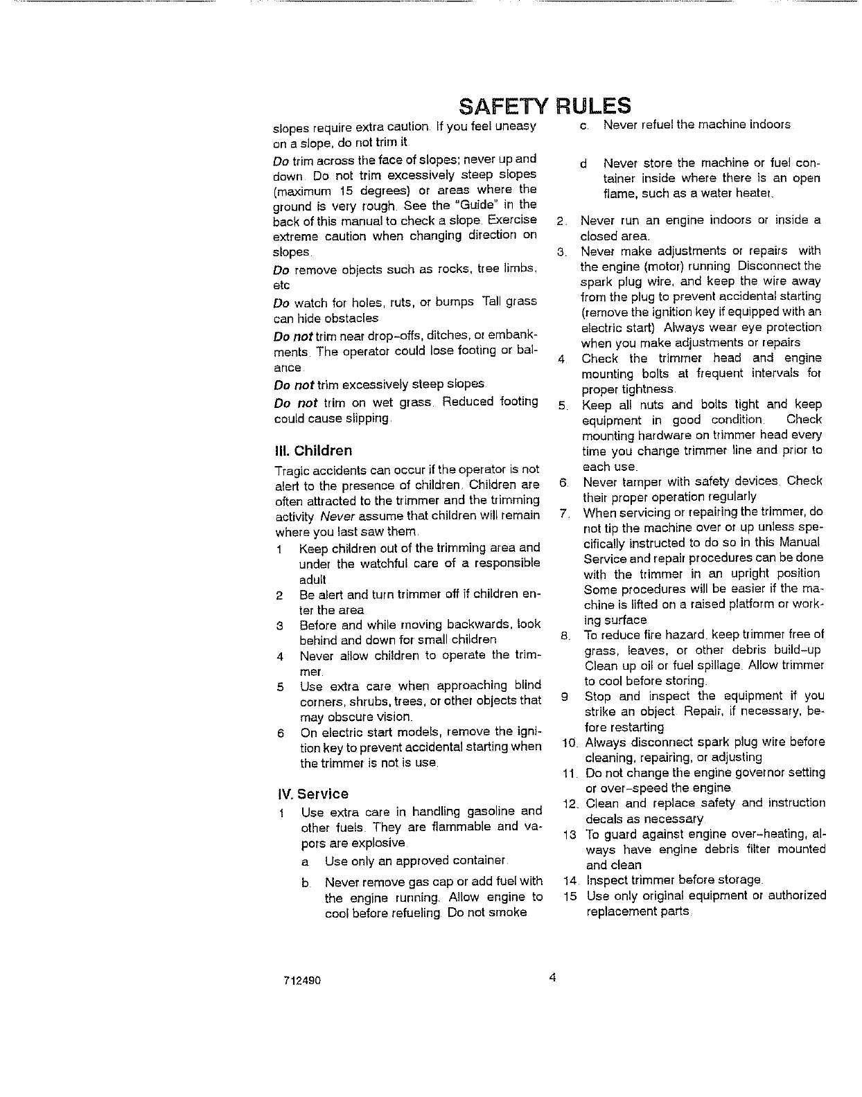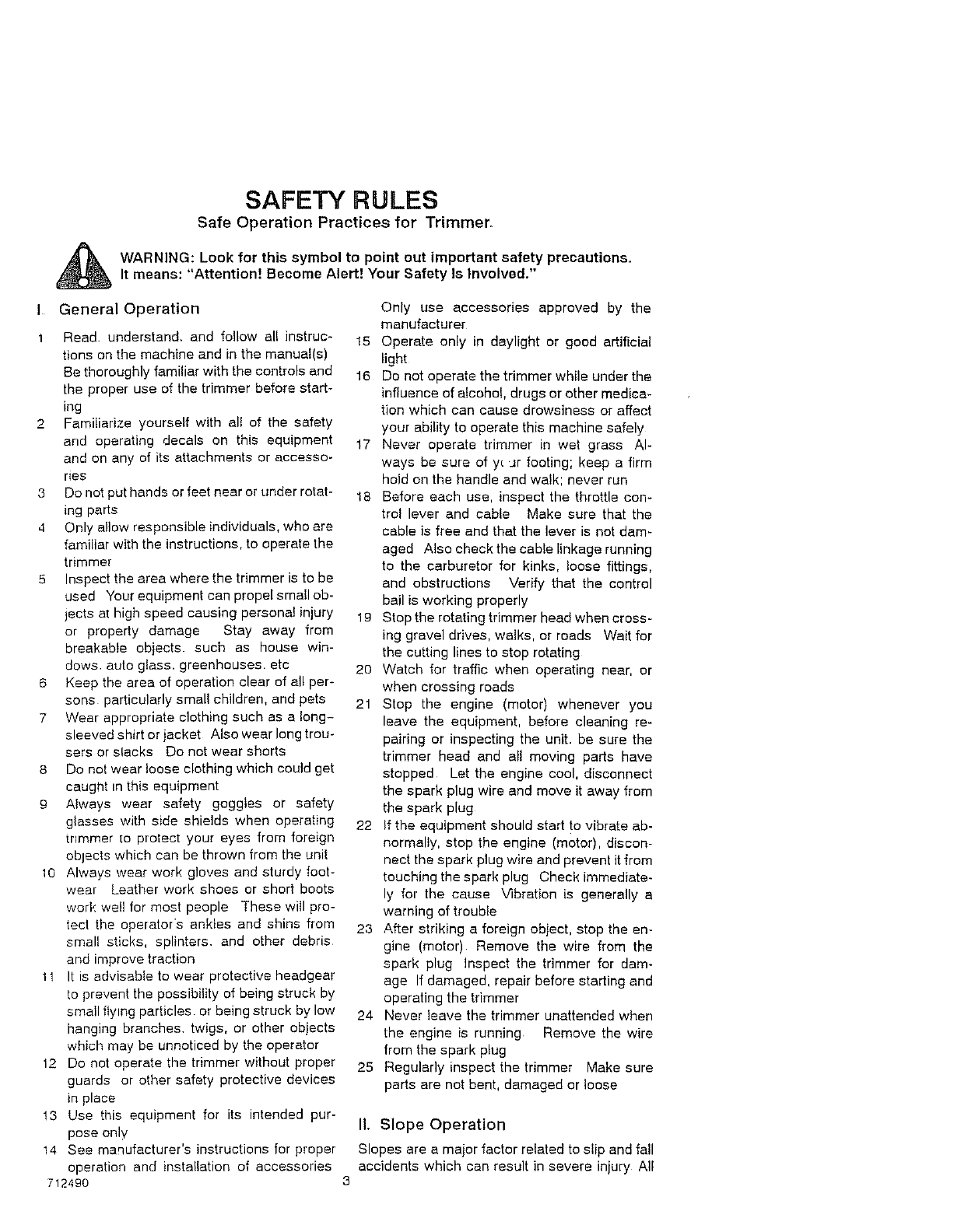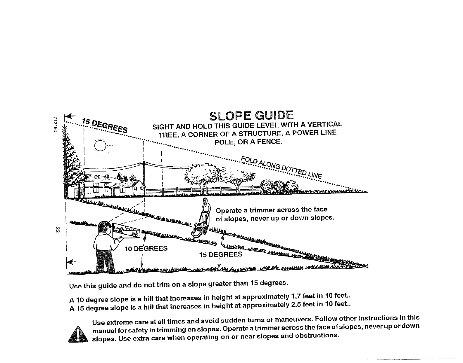 manual for safety in trimming on slopes. Operate a trimmer across the face of slopes, never up or down