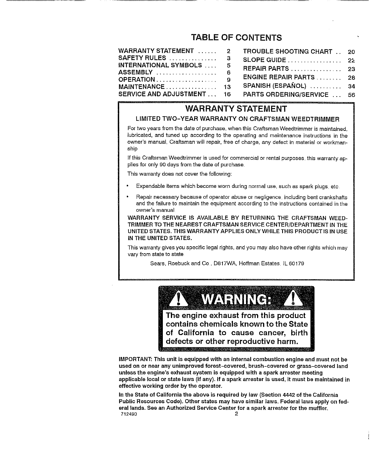 LIMITED TWO-YEAR WARRANTY ON CRAFTSMAN WEEDTRIMMER