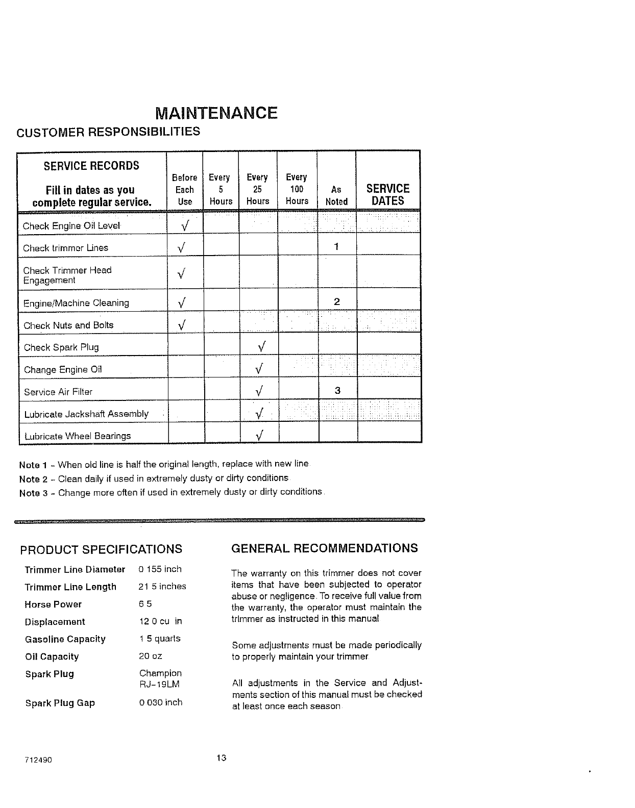MAINTENANCE ................. 13