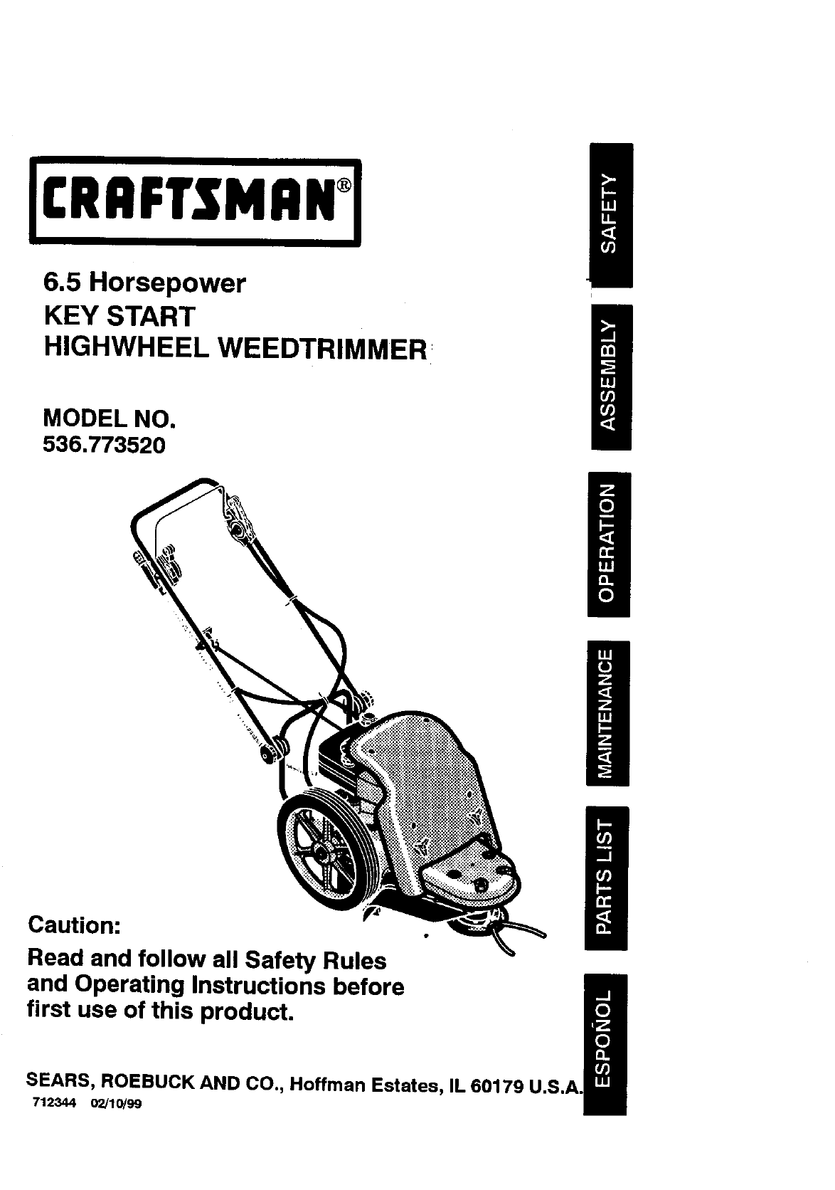 Craftsman 536773520 User Manual HIGH WHEEL BRUSH TRIMMER Manuals And Guides L9060268