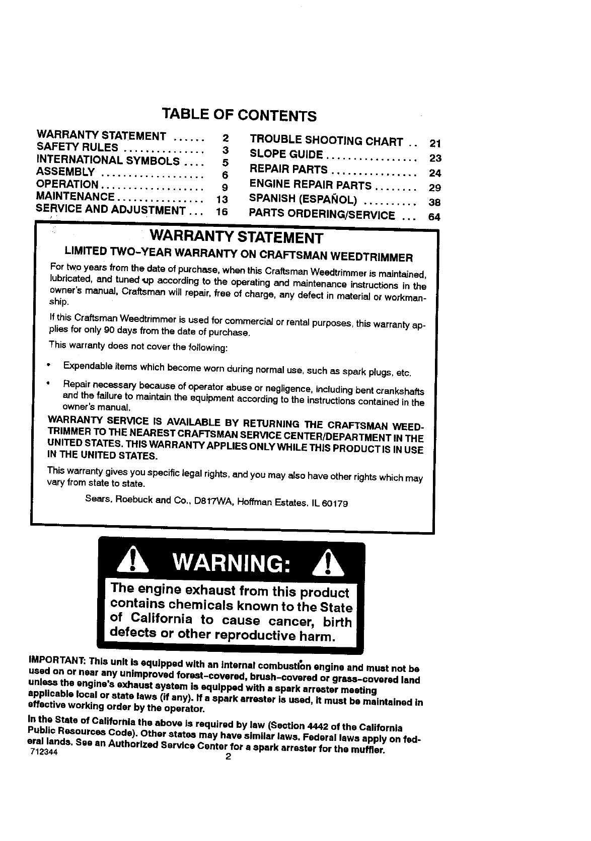 WARRANTY SERVICE IS AVAILABLE BY RETURNING THE CRAFTSMAN WEED°