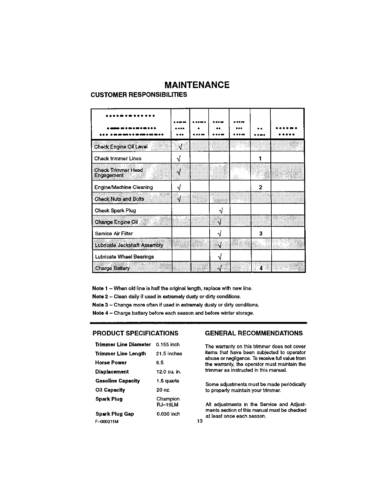 lubricated, and tuned up according to the operating and maintenance instructions in the