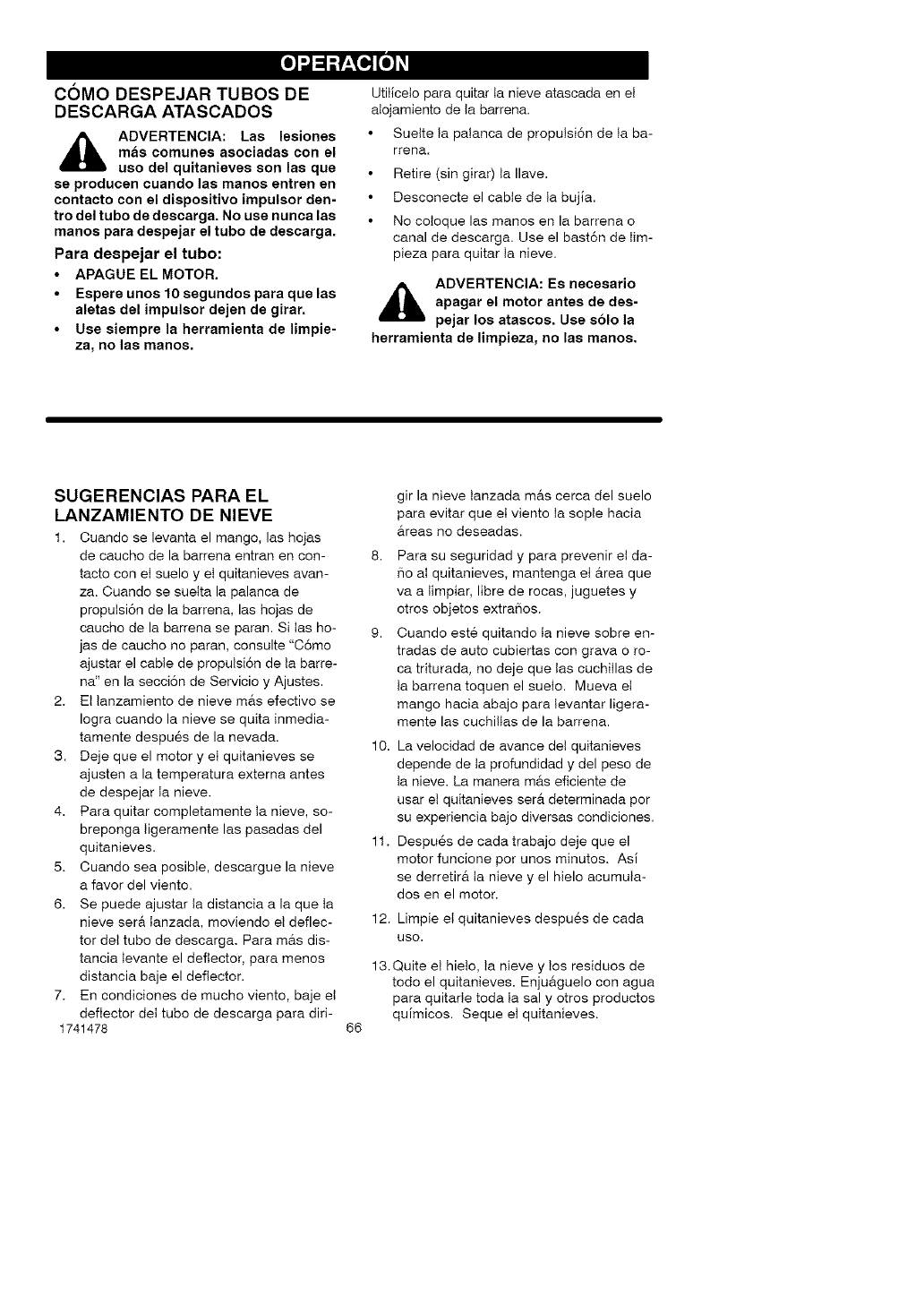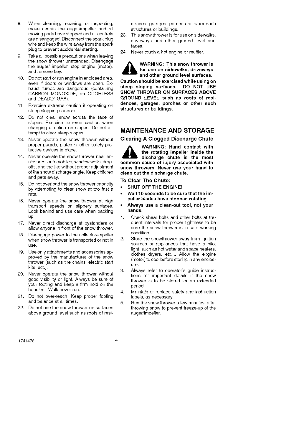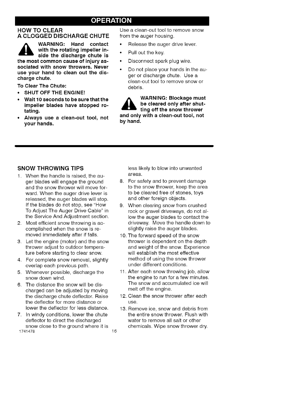 ,_ WARNING: This snow thrower is