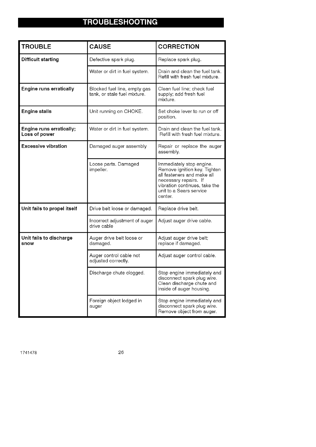 TROUBLE SHOOTING CHART,. 26