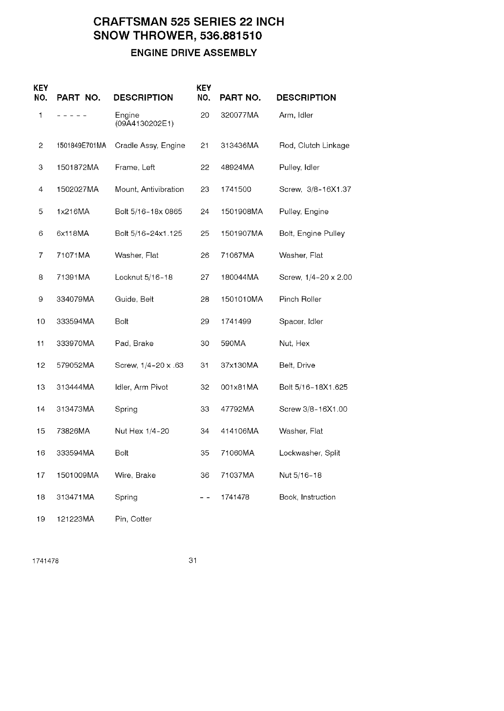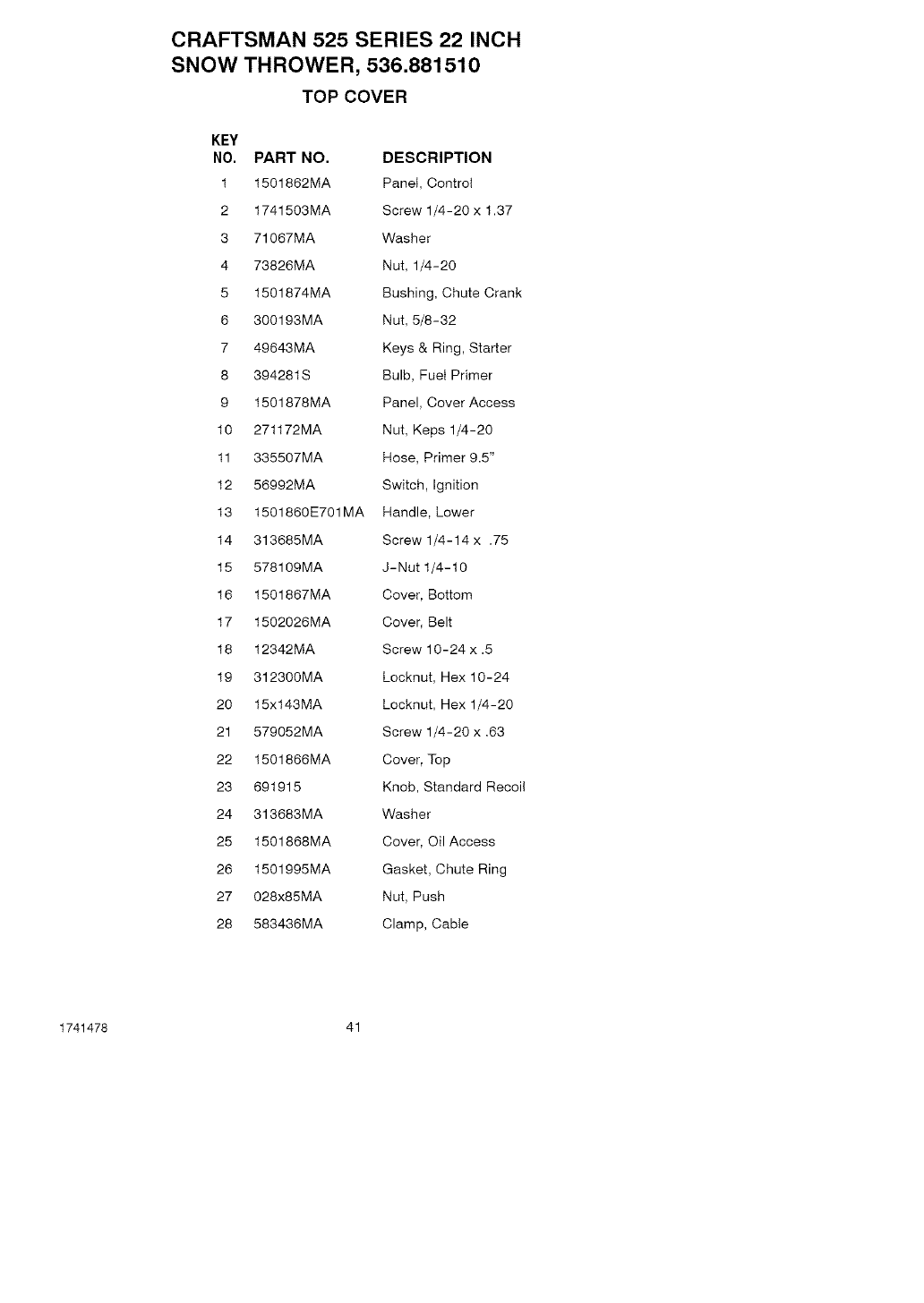 User Manual: Craftsman 536881510 536881510 CRAFTSMAN SNOW THROWER - Manuals and Guides View the owners manual for your CRAFTSMAN SNOW THROWER #536881510. Home:Lawn & Garden Parts:Craftsman Parts:Craftsman SNOW THROWER Manual