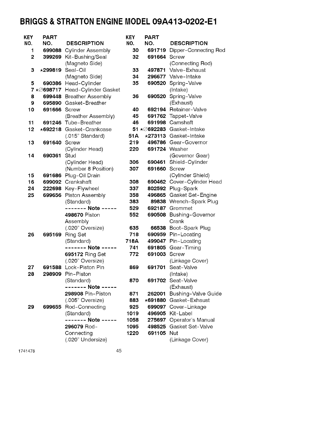 ENGINE REPAIR PARTS ....... 44