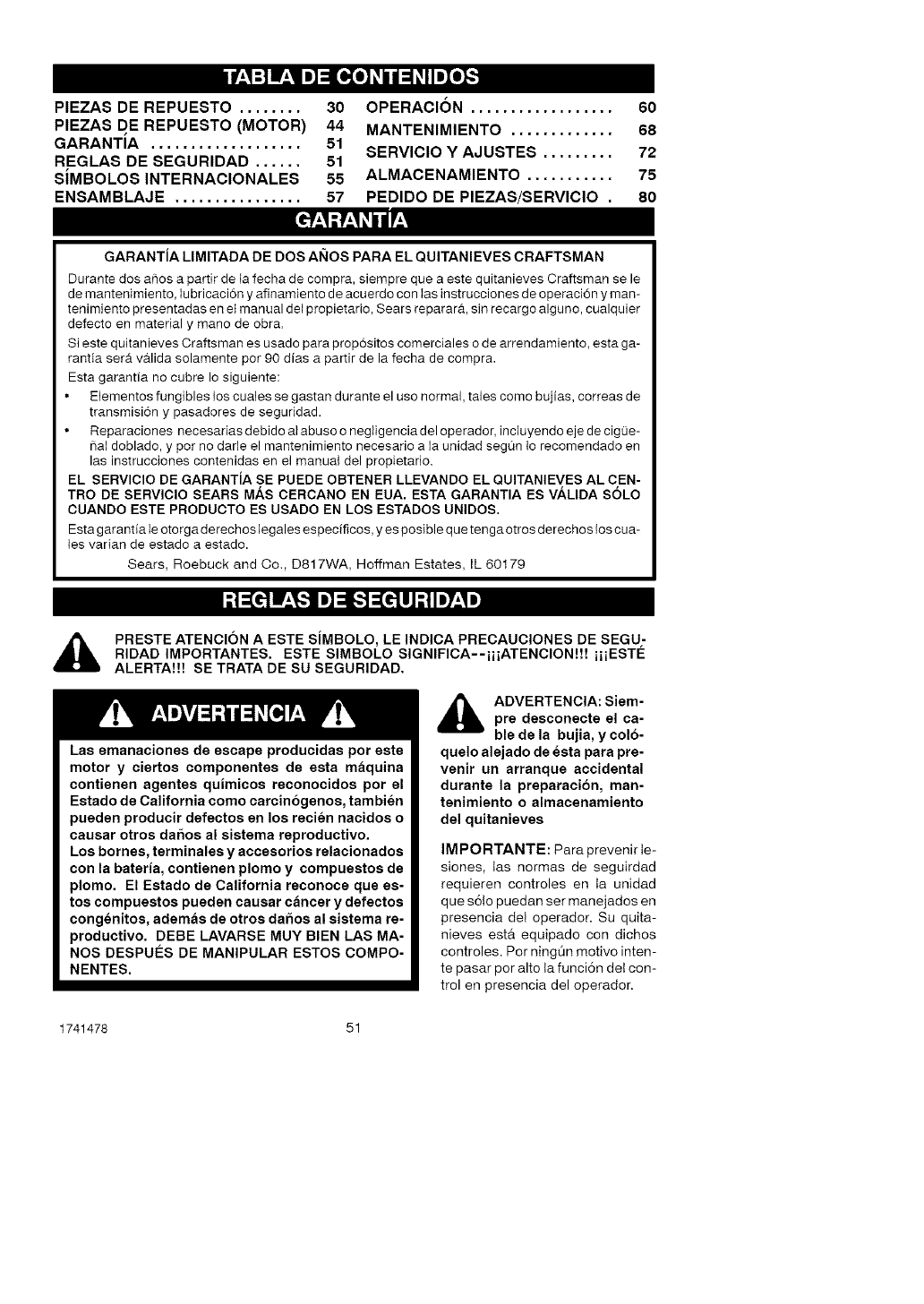 WARRANTY SERVICE IS AVAILABLE BY RETURNING THE CRAFTSMAN SNOW