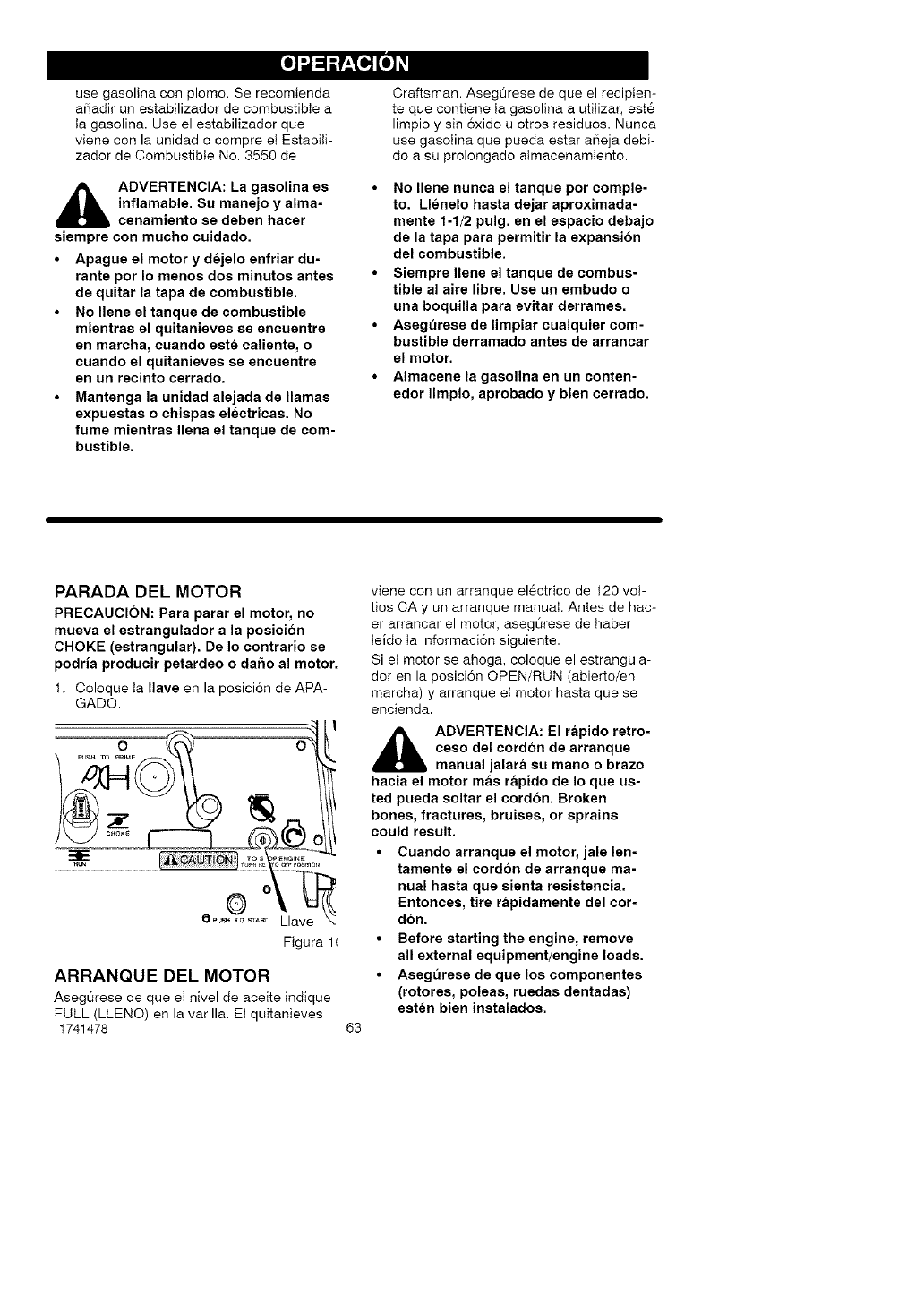 real de operaci6n del motor.