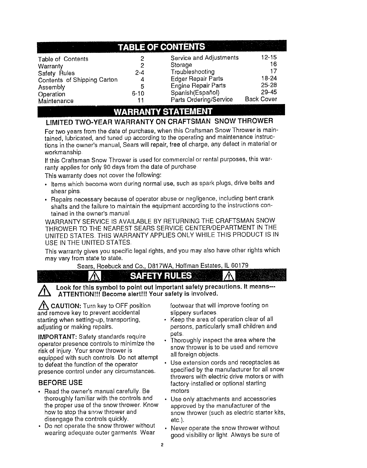 LIMITEDTWO-YEARWARRANTY ON CRAFTSMAN SNOWTHROWER