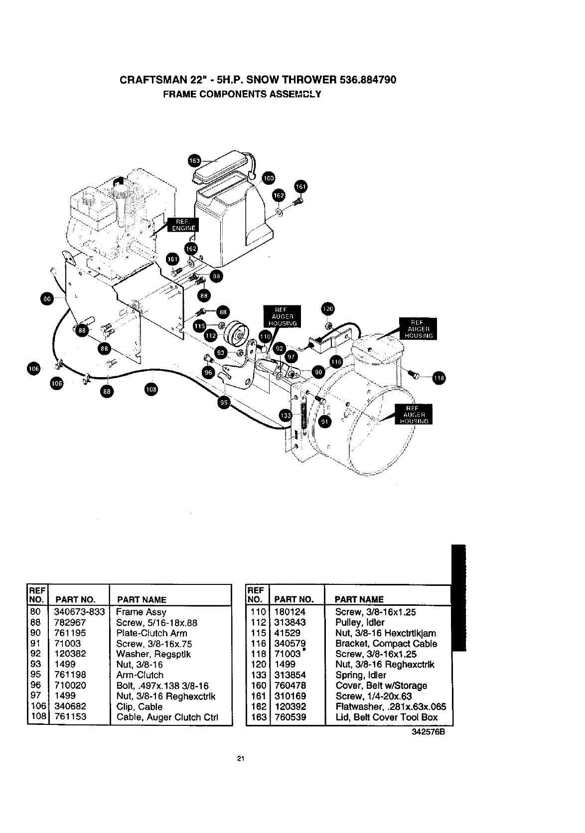 User Manual: Craftsman 536884790 536884790 CRAFTSMAN 5 HP SNOW THROWER - Manuals and Guides View the owners manual for your CRAFTSMAN 5 HP SNOW THROWER #536884790. Home:Lawn & Garden Parts:Craftsman Parts:Craftsman 5 HP SNOW THROWER Manual