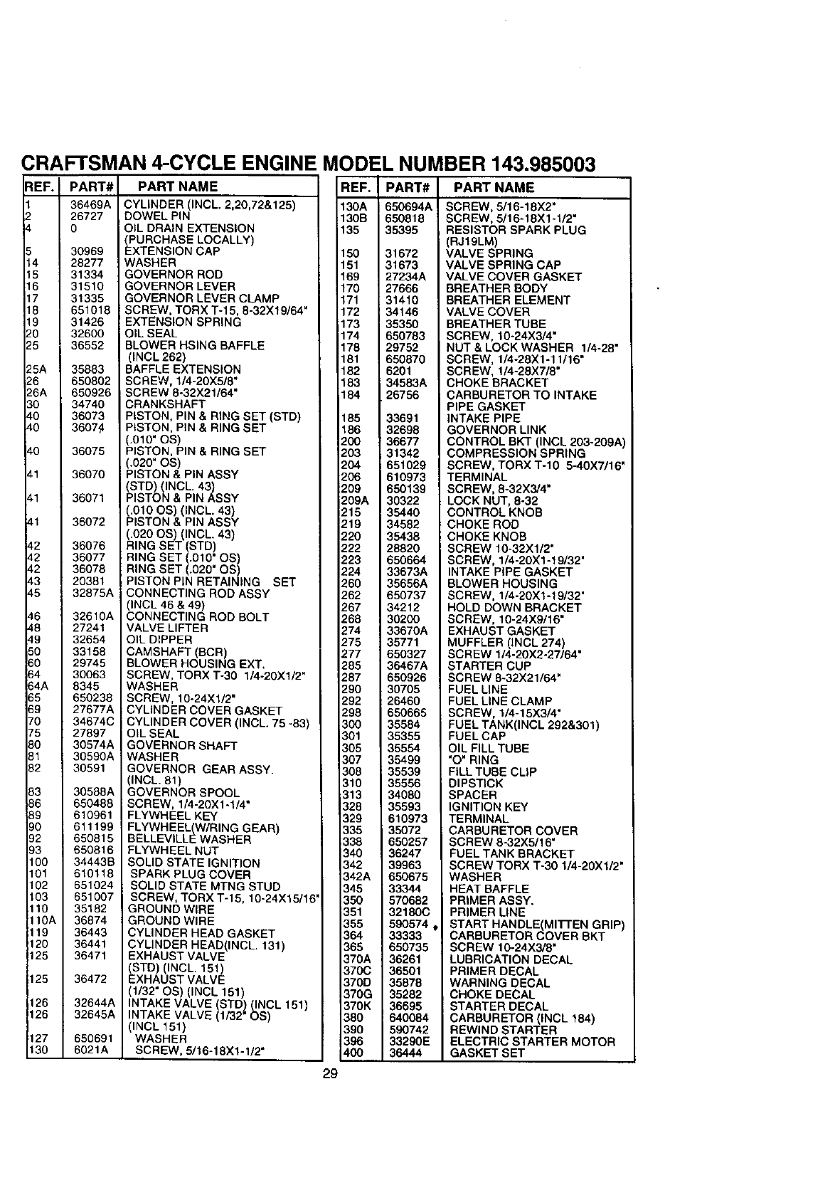 THROWER TO THE NEAREST CRAFTSMAN SERVICE CENTER/DEPARTMENT IN
