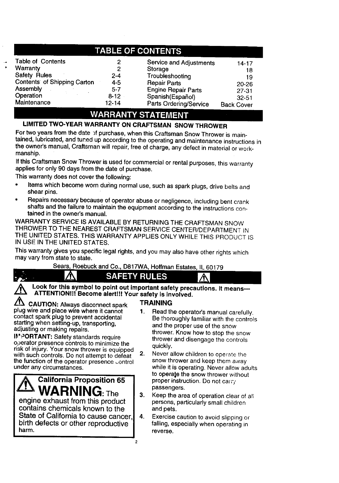 LIMITED TWO-YEAR WARRANTY ON CRAFTSMAN SNOW THROWER