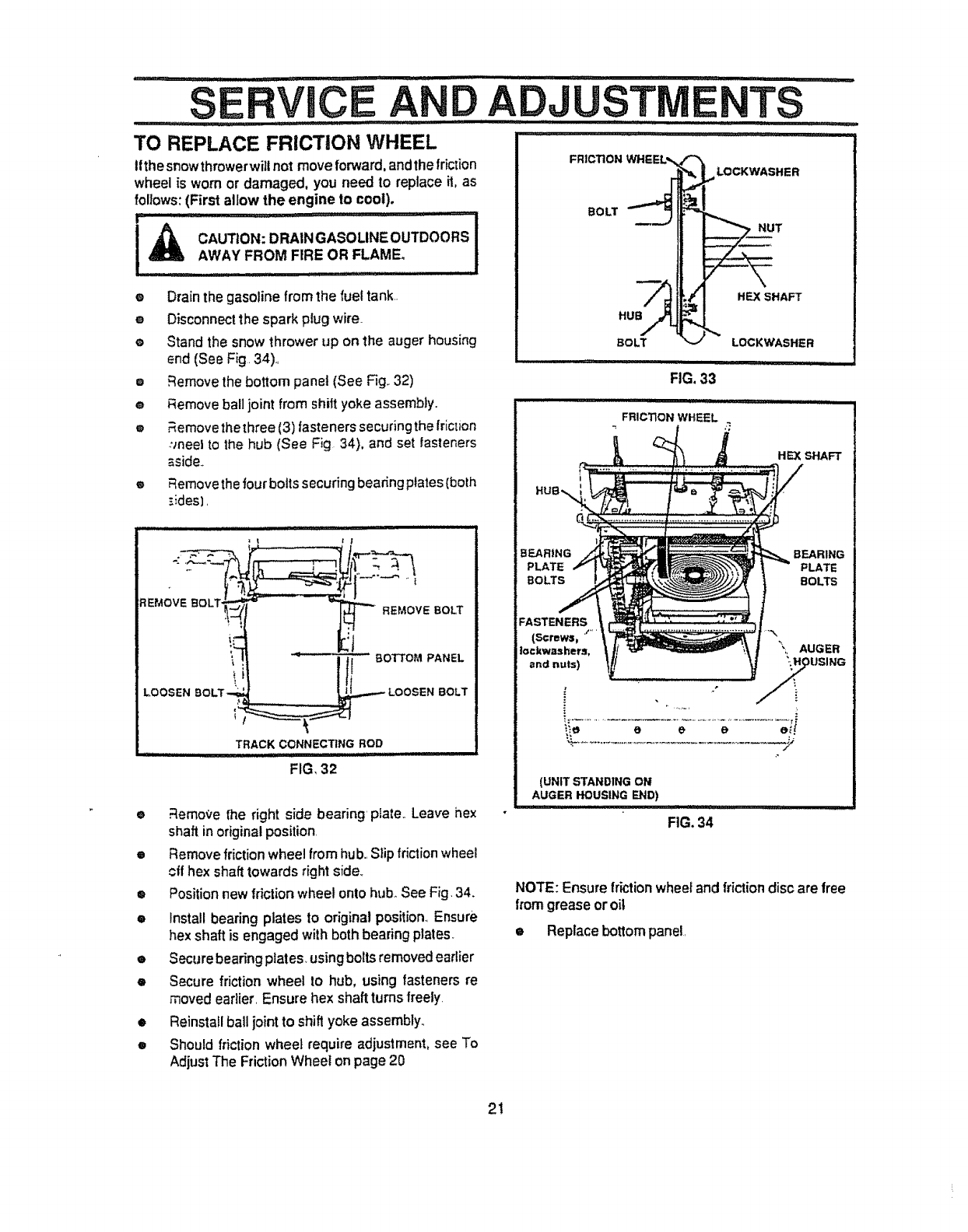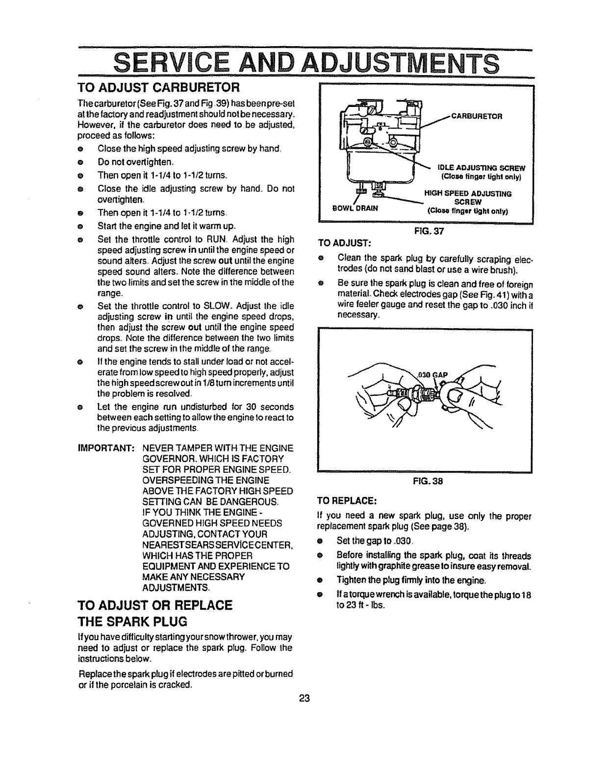 CAUTION: ALWAYS DISCONNECT SPARK PLUG WIRE AND PLACE A