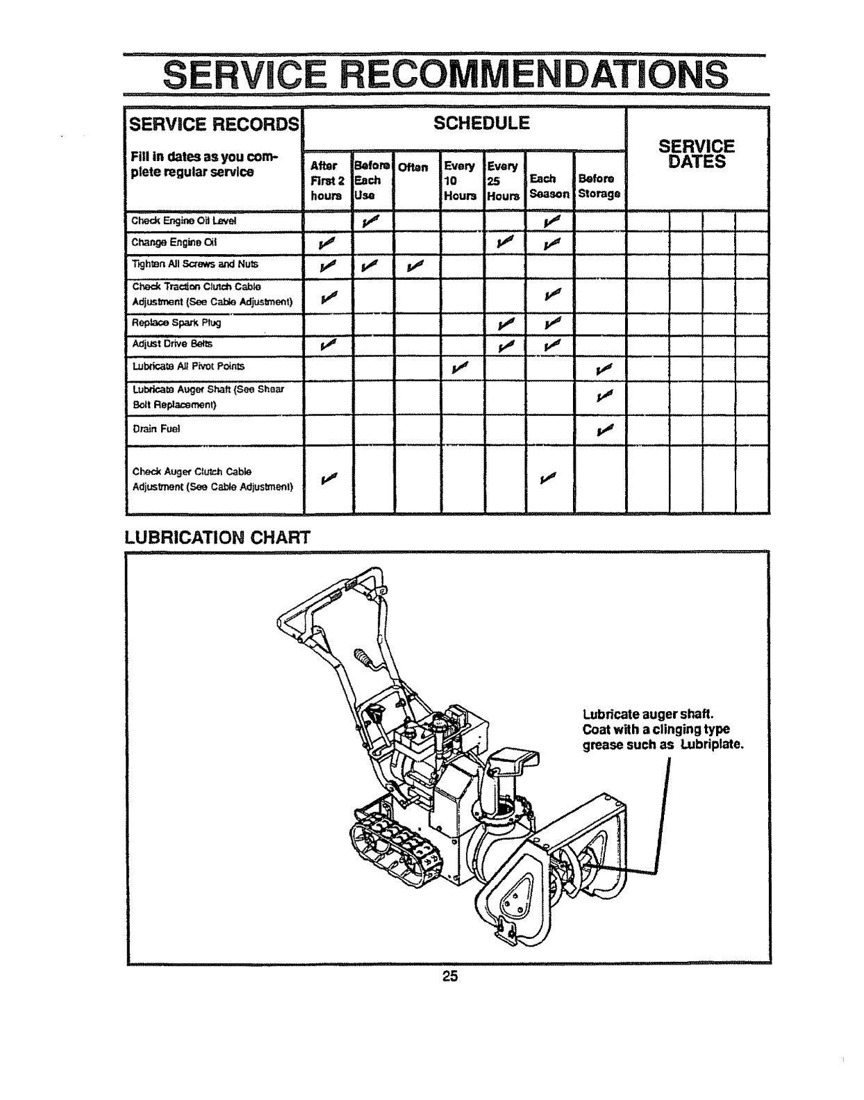 • Check shear bolts and other bolts at frequent