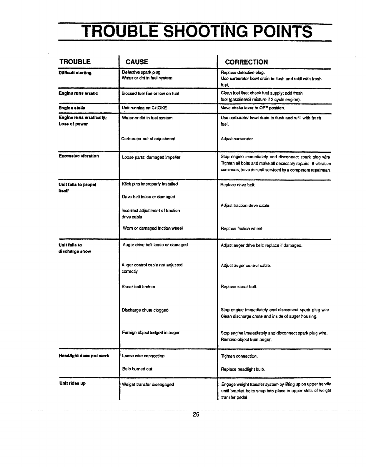 provedby the manufacturer of the snow thrower