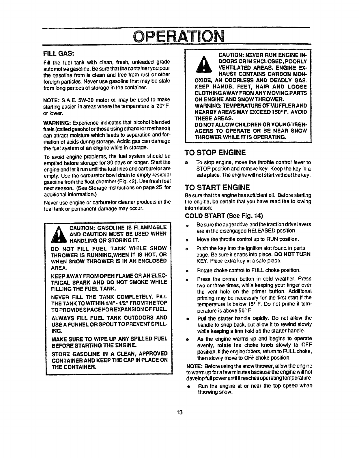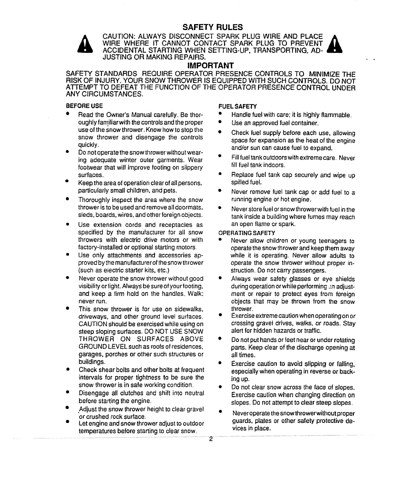 use of the snow thrower. Know how to stop the