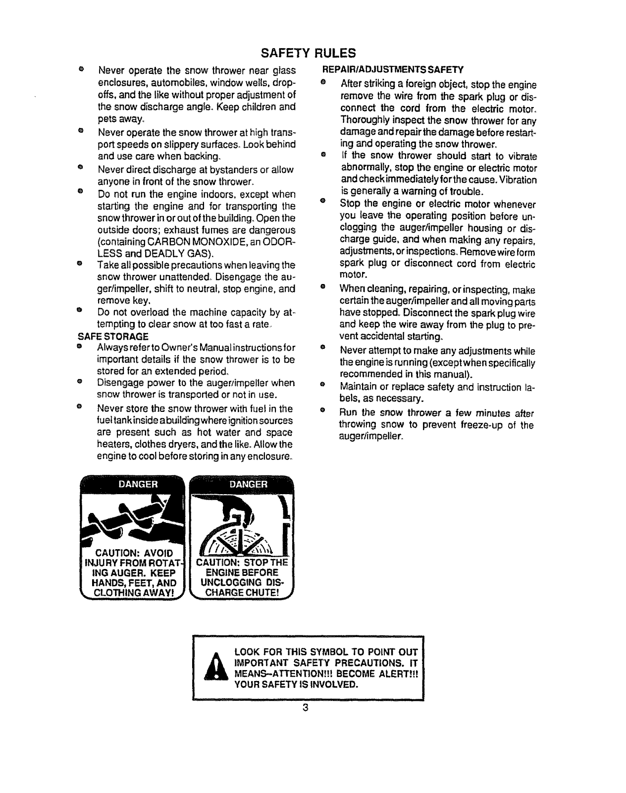 RISK OF INJURY. YOUR SNOW THROWER IS EQUIPPED WITH SUCH CONTROLS. DO NOT