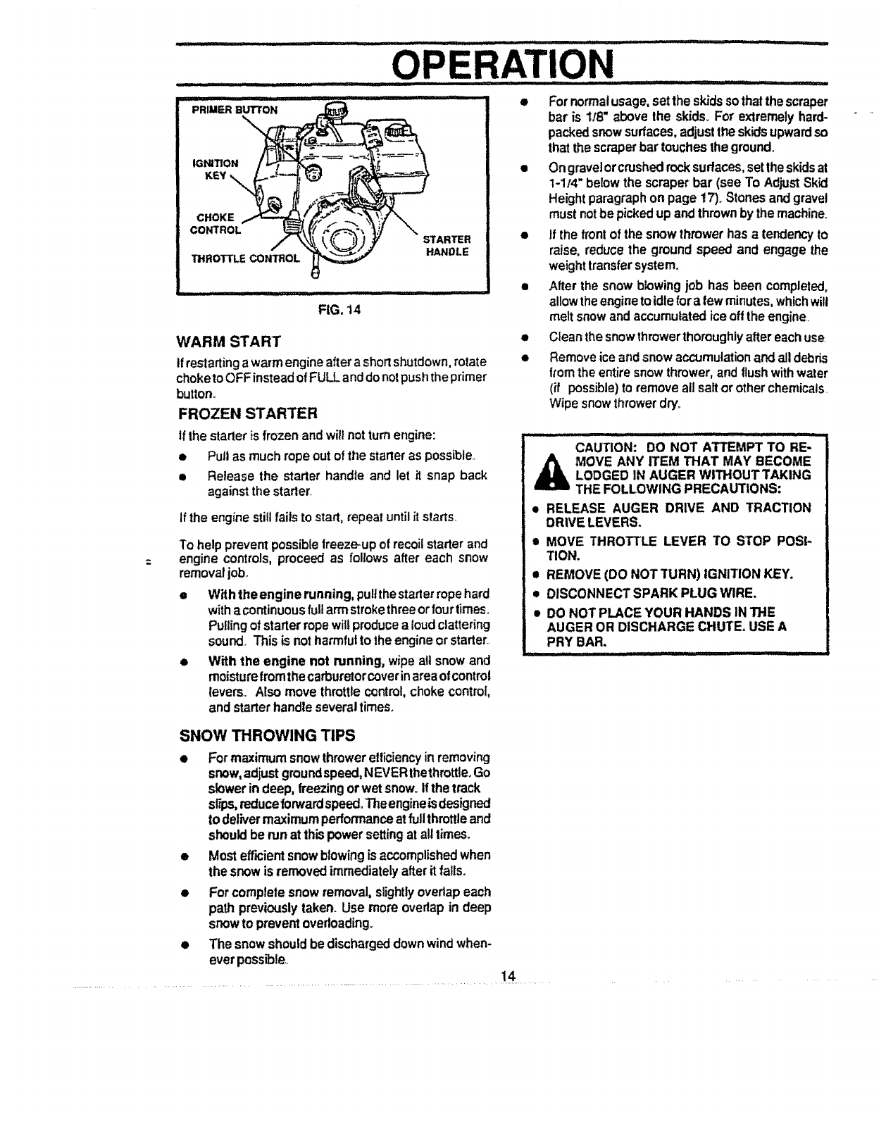 snow thrower and disengage the controls
