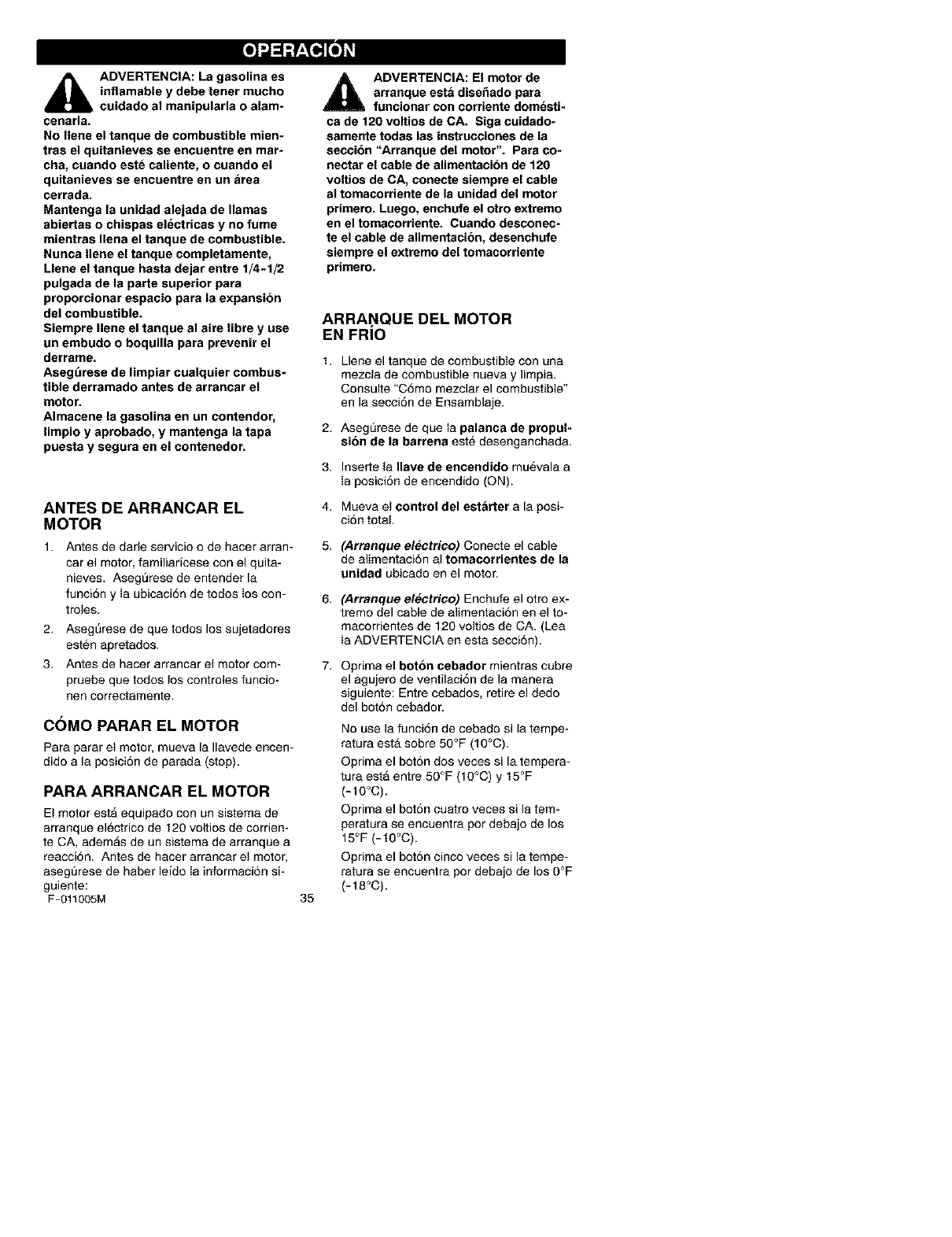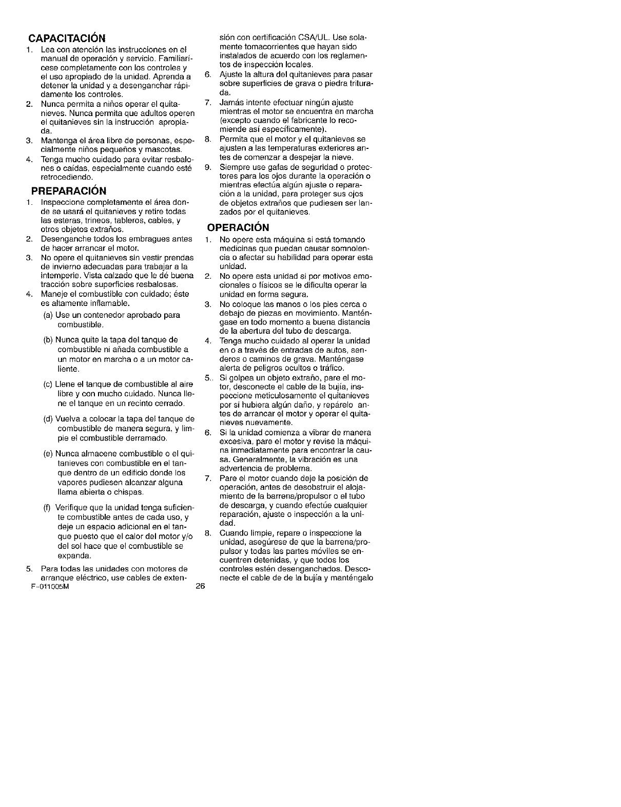 seguridad e instrucciones de operaci6n.
