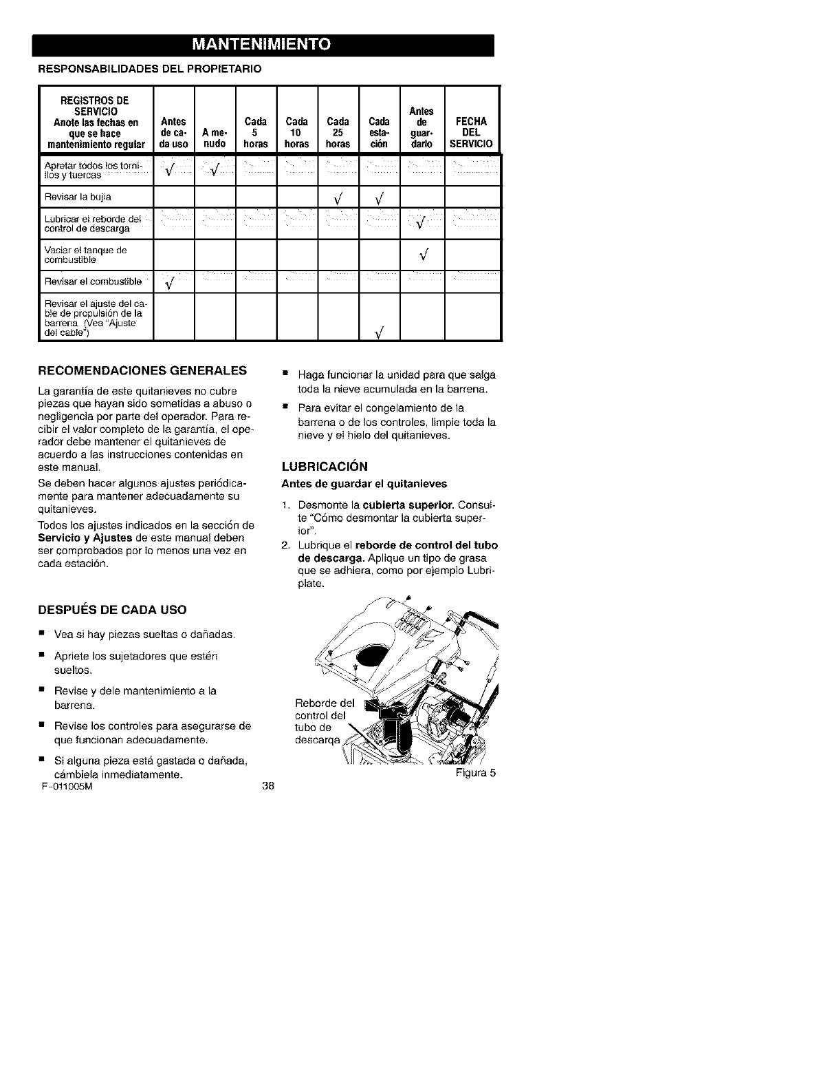 lubricated, and tuned up according to the operating and maintenance instructions in the