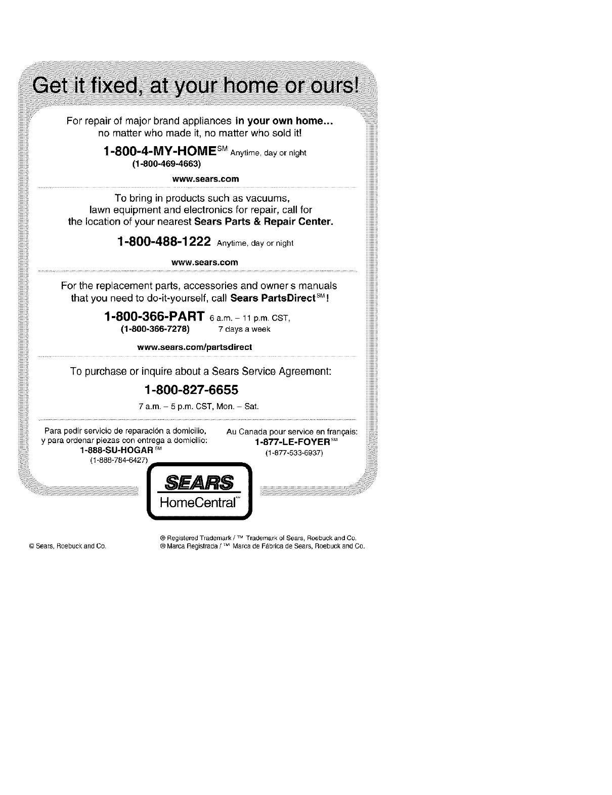 Sears, Roebuck and Co., Hoffman Estates, IL 60179 U.S.A.