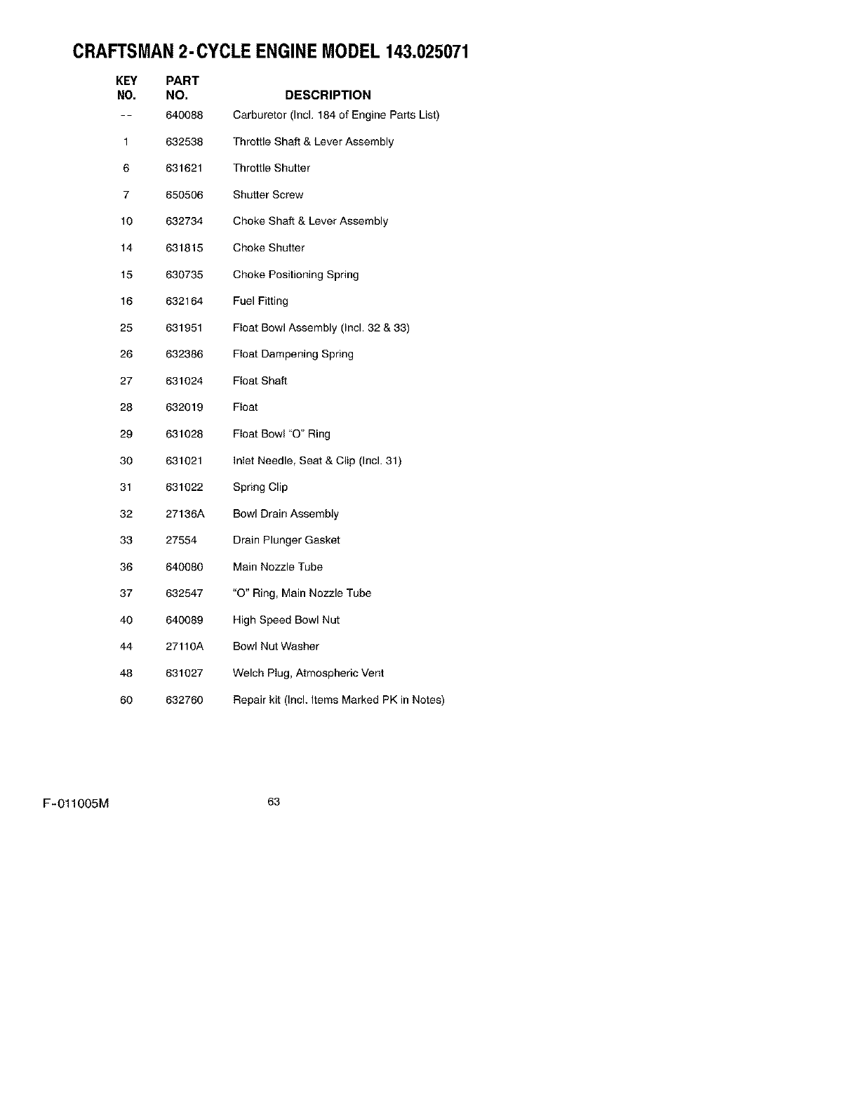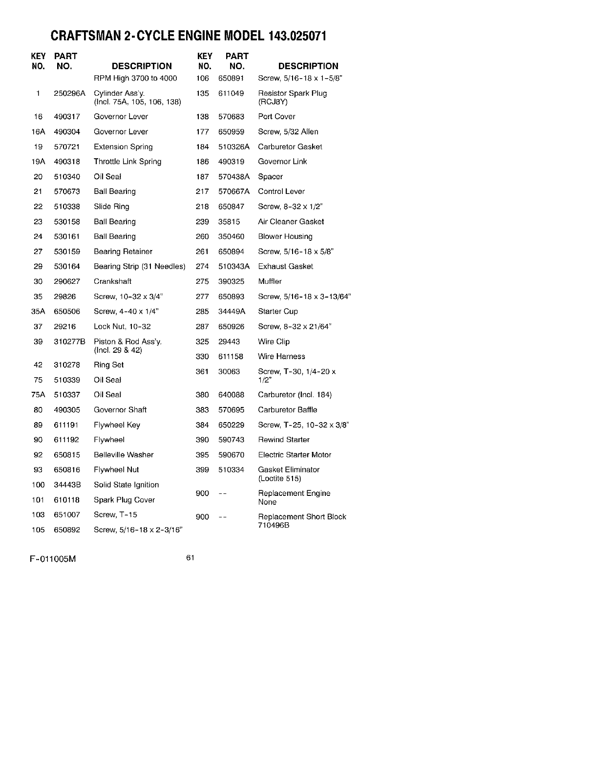 CRAFTSMAN2-CYCLE ENGINEMODEL 143.025071