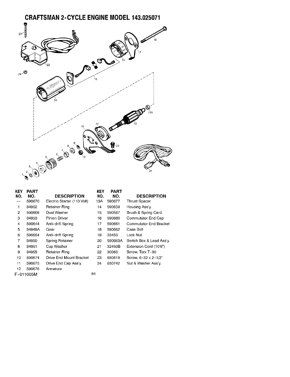 -- 590670 Electric Starter (110 Volt) 13A 590677 Thrust Spacer