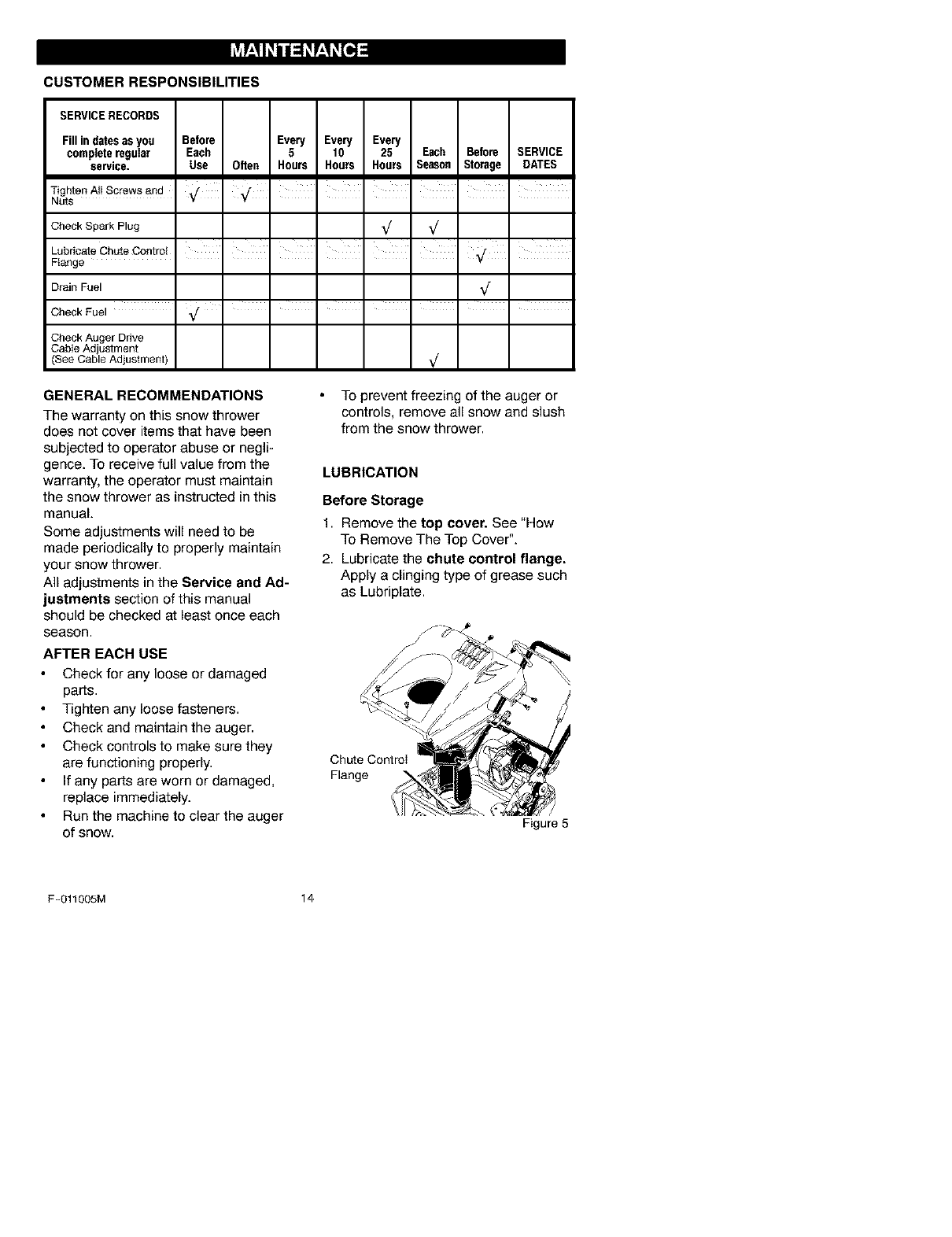 age of your snow thrower.