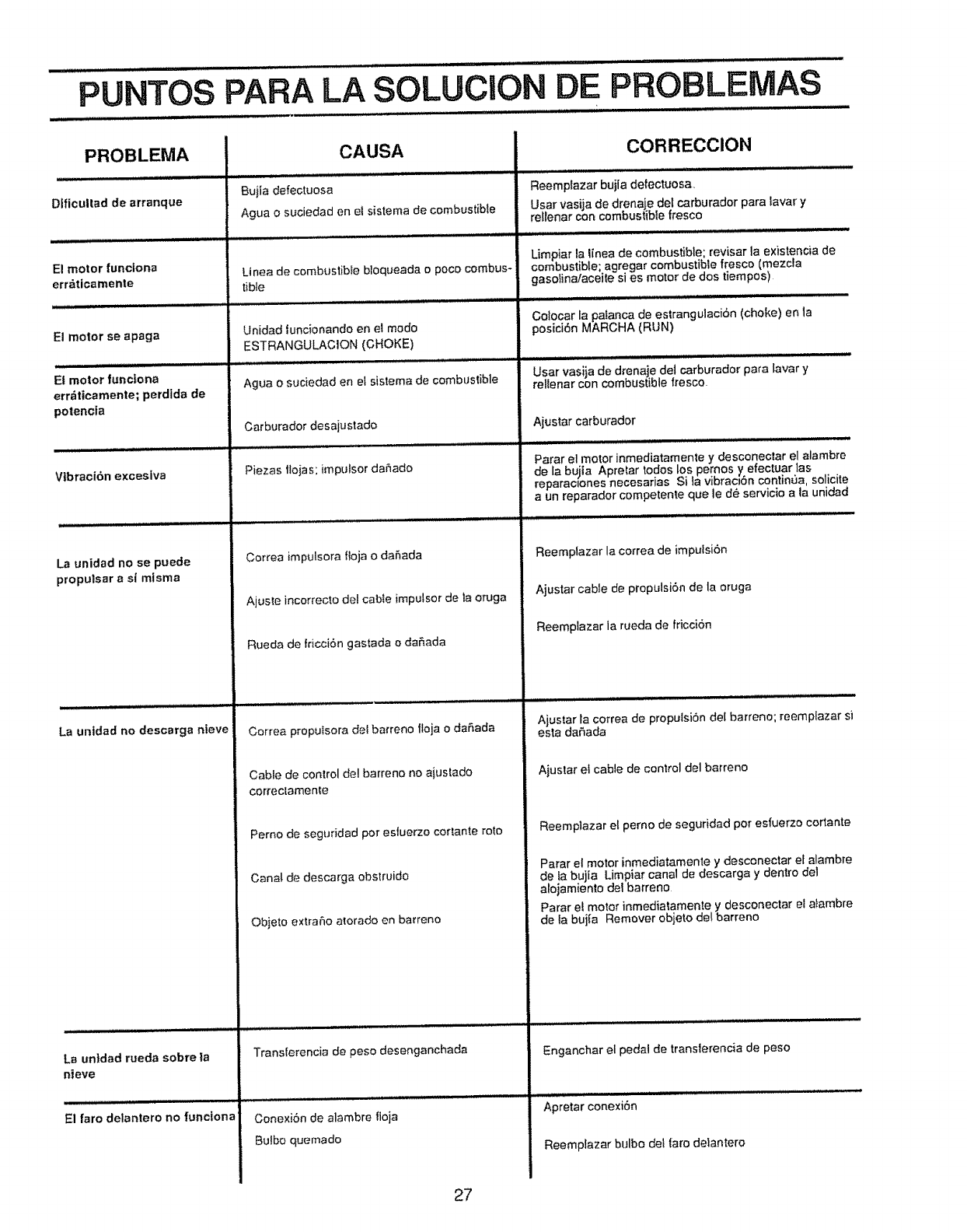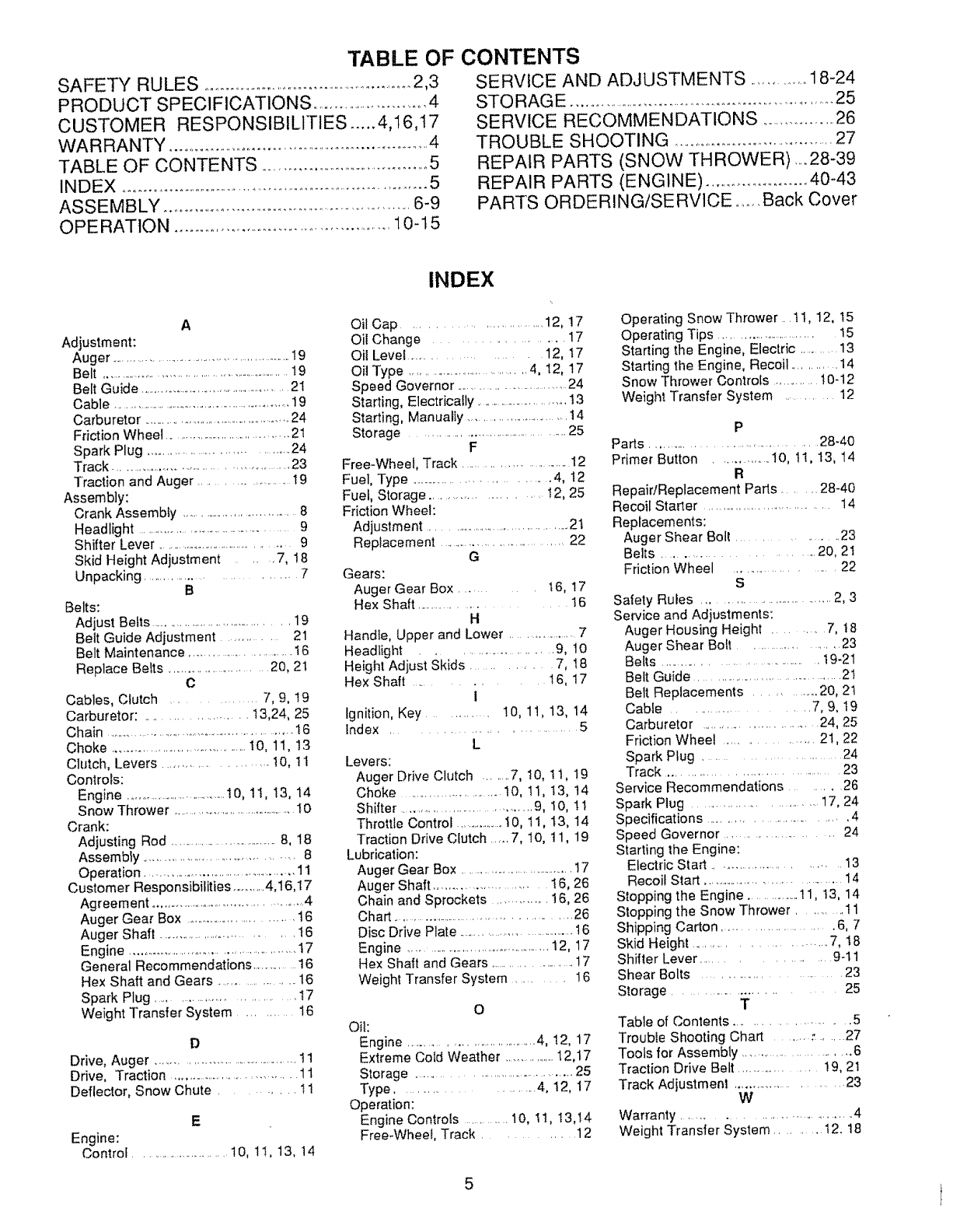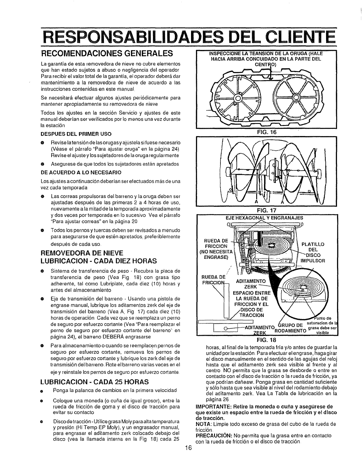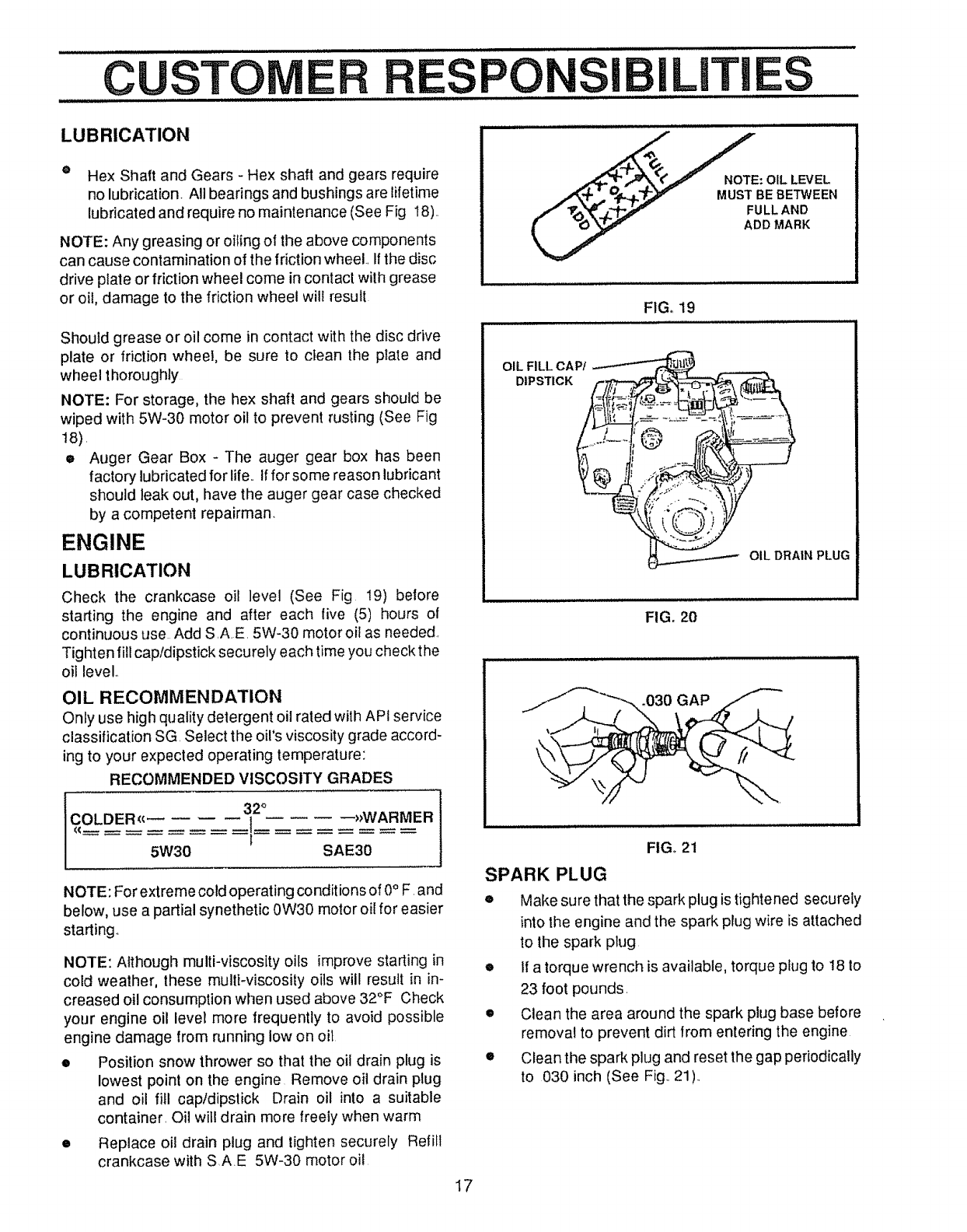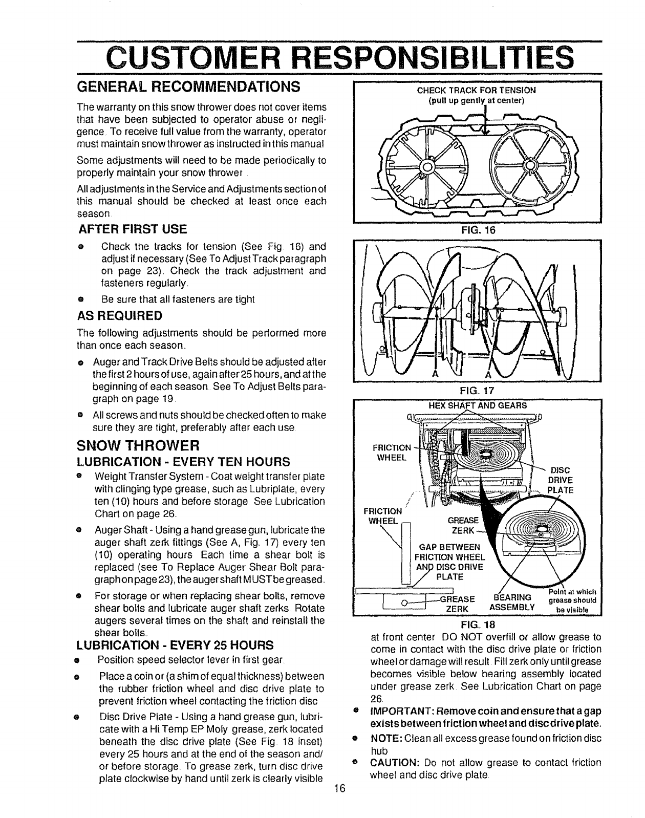 by the manufacturer for all snow throwers with