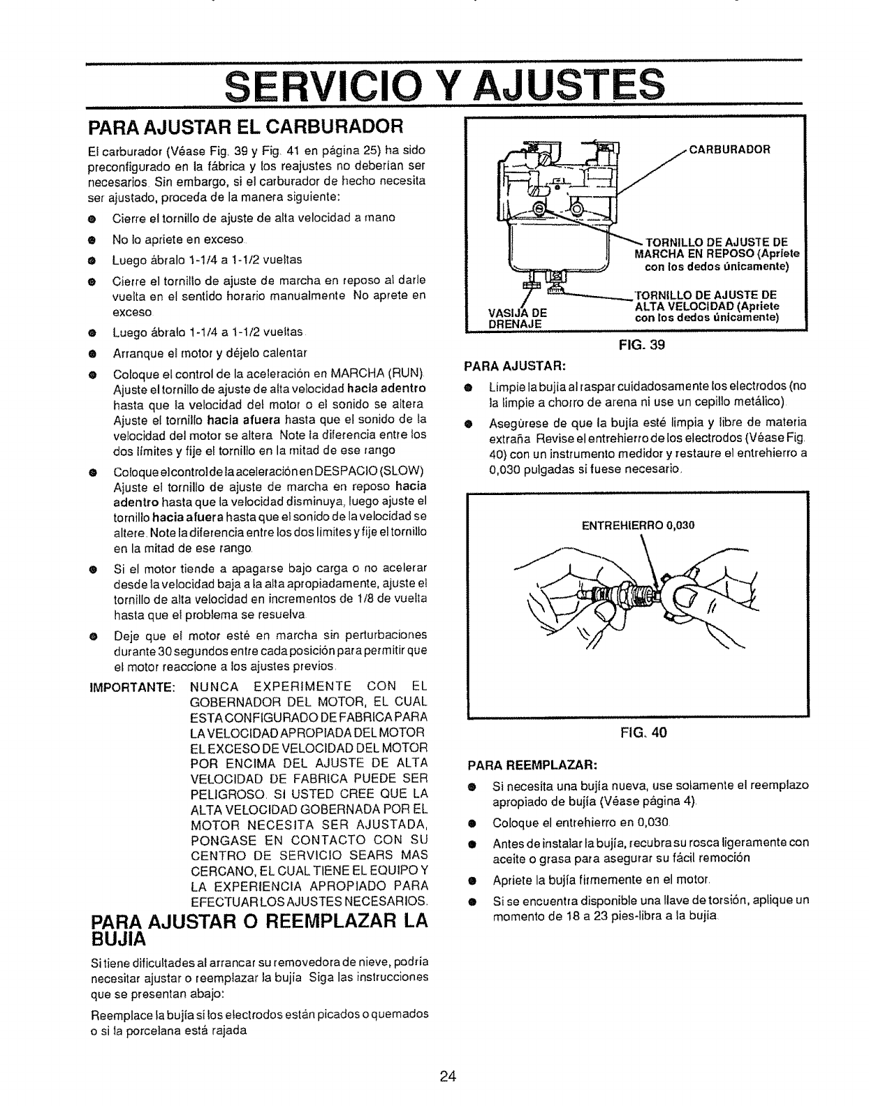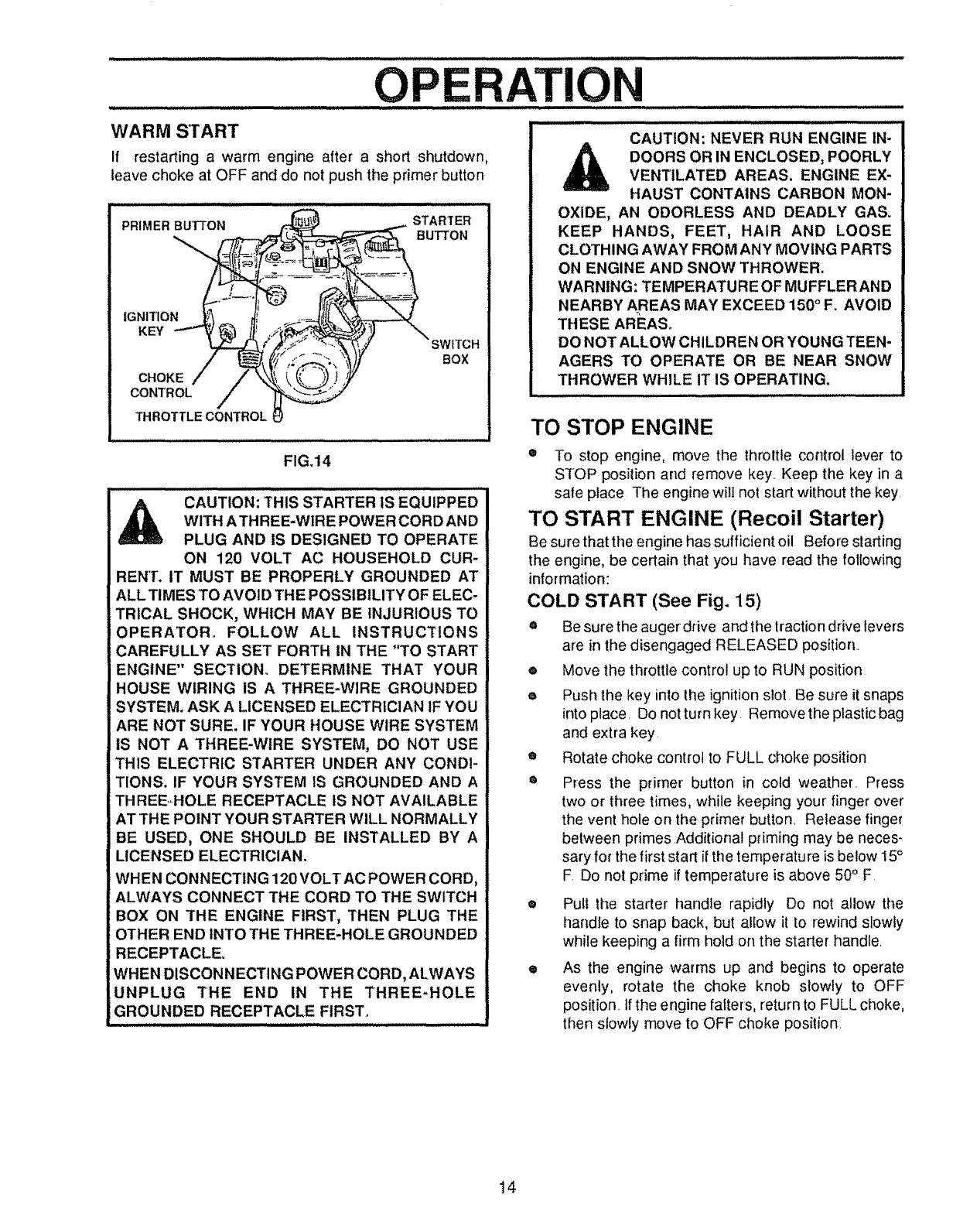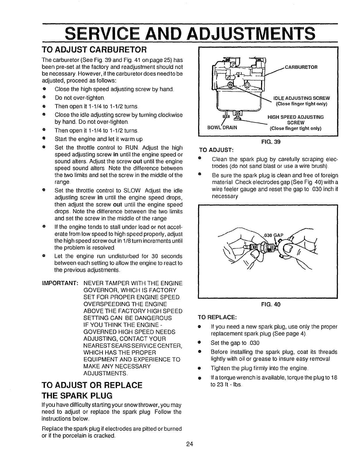 CAUTION: ALWAYS DISCONNECT SPARK PLUG WIRE AND ._