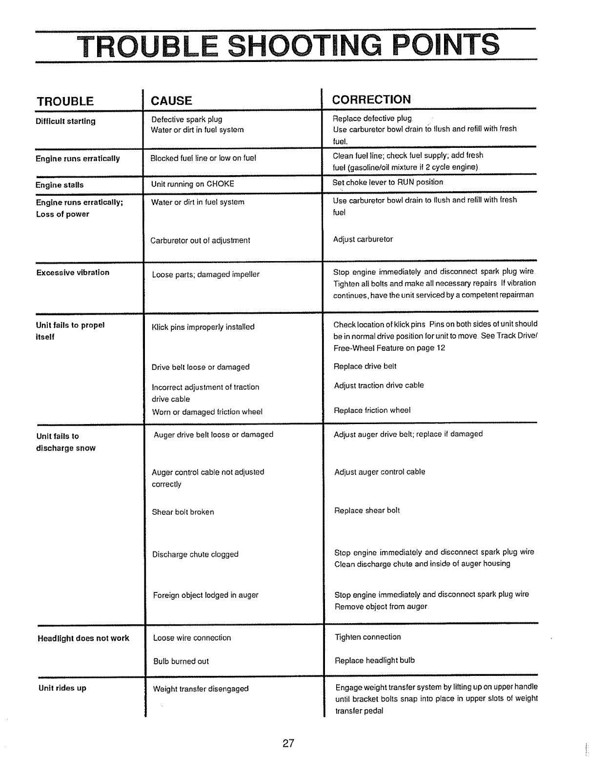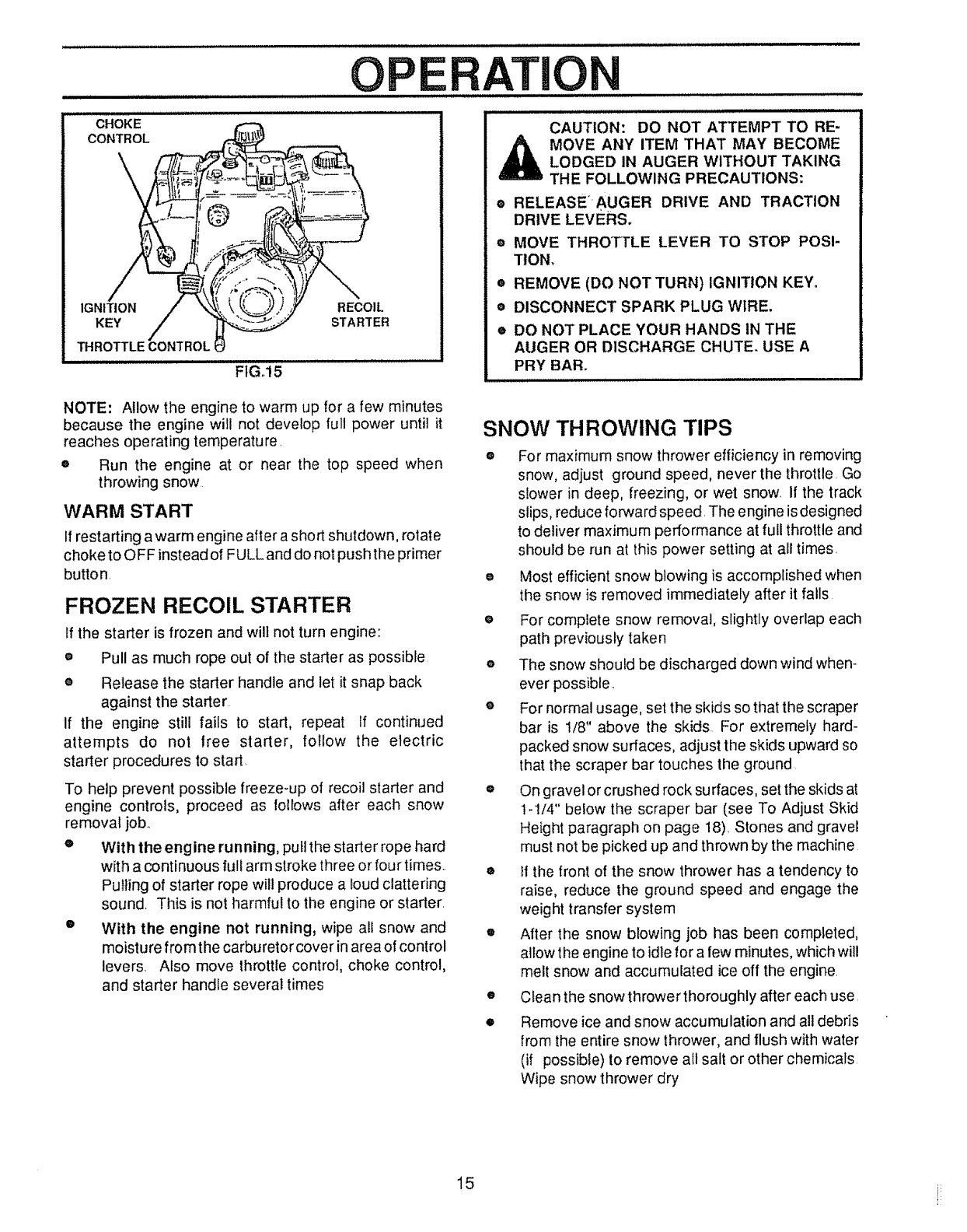 proper use of the snow thrower. Know how to