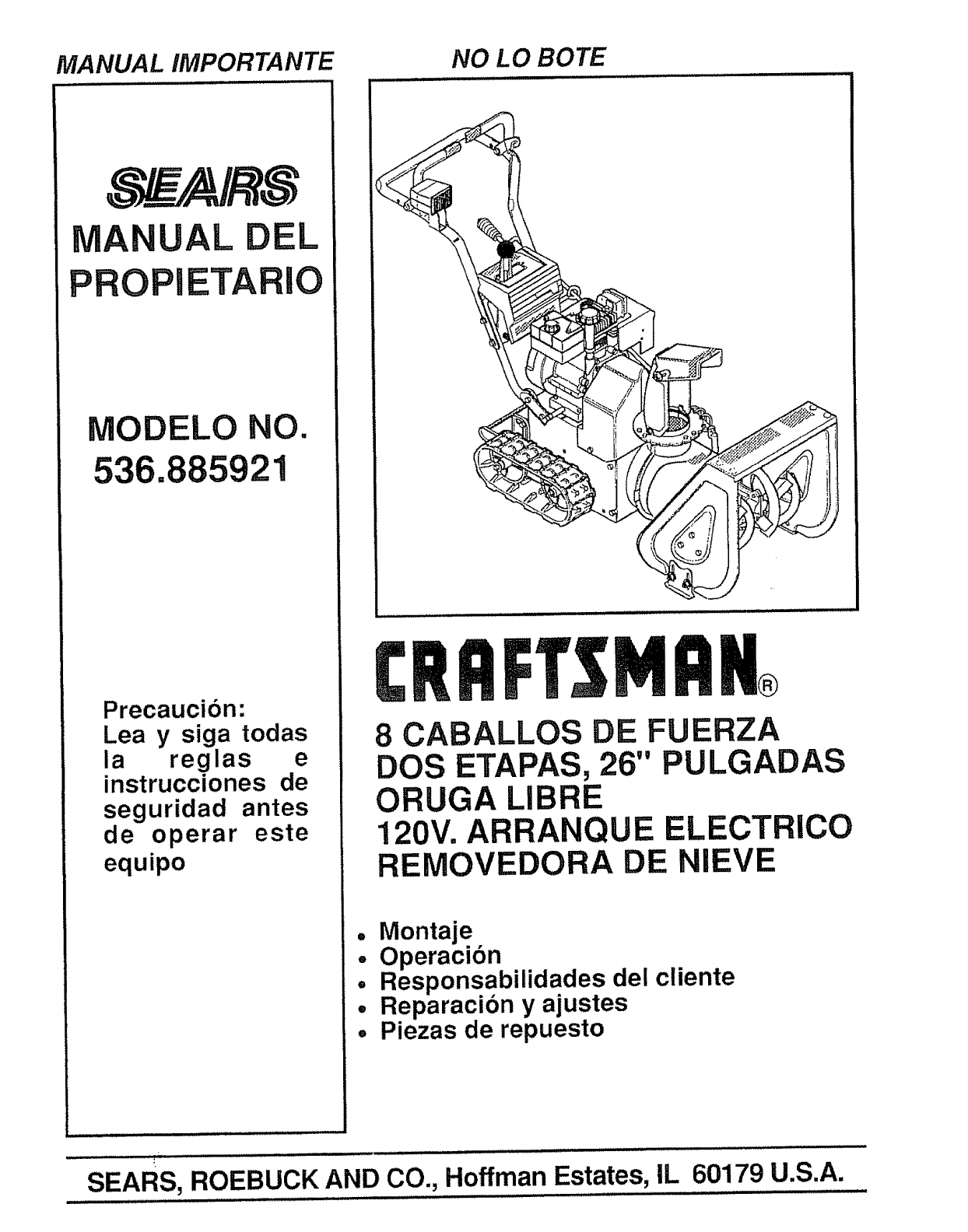 User Manual: Craftsman 536885921 536885921 CRAFTSMAN SNOW THROWER - Manuals and Guides View the owners manual for your CRAFTSMAN SNOW THROWER #536885921. Home:Lawn & Garden Parts:Craftsman Parts:Craftsman SNOW THROWER Manual