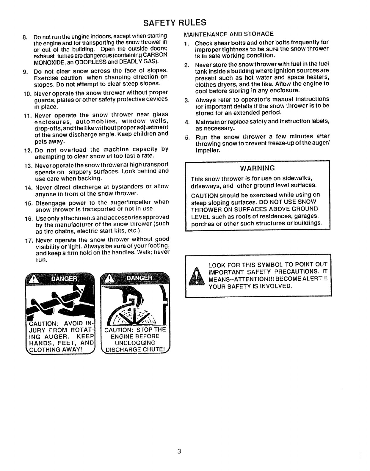 RISK OF INJURY, YOUR SNOW THROWER IS EQUIPPED WITH SUCH CONTROLS. DO NOT