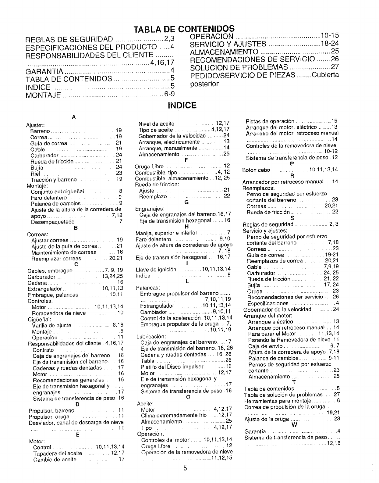 repuesto para su REMOVEDORA DE NIEVE.