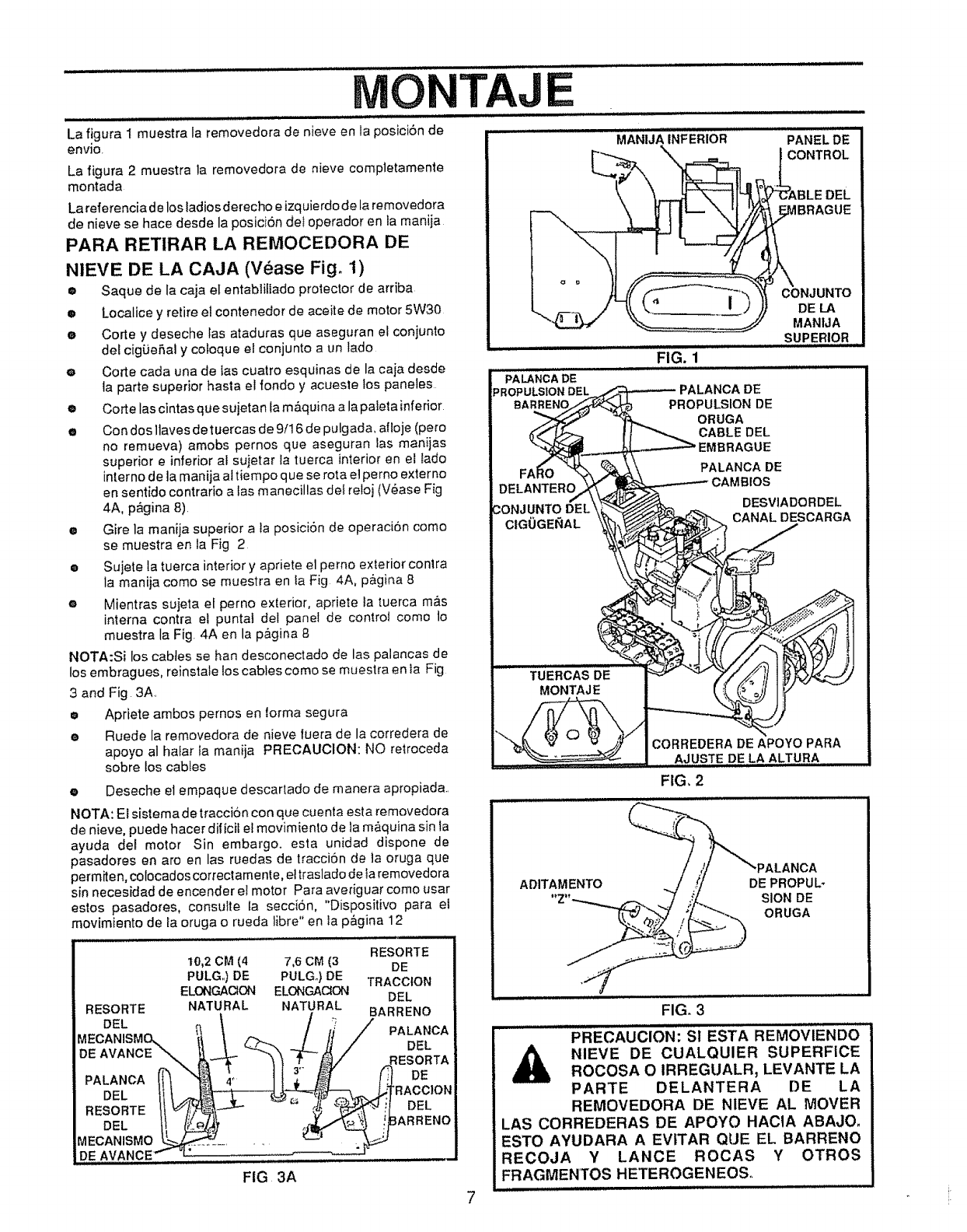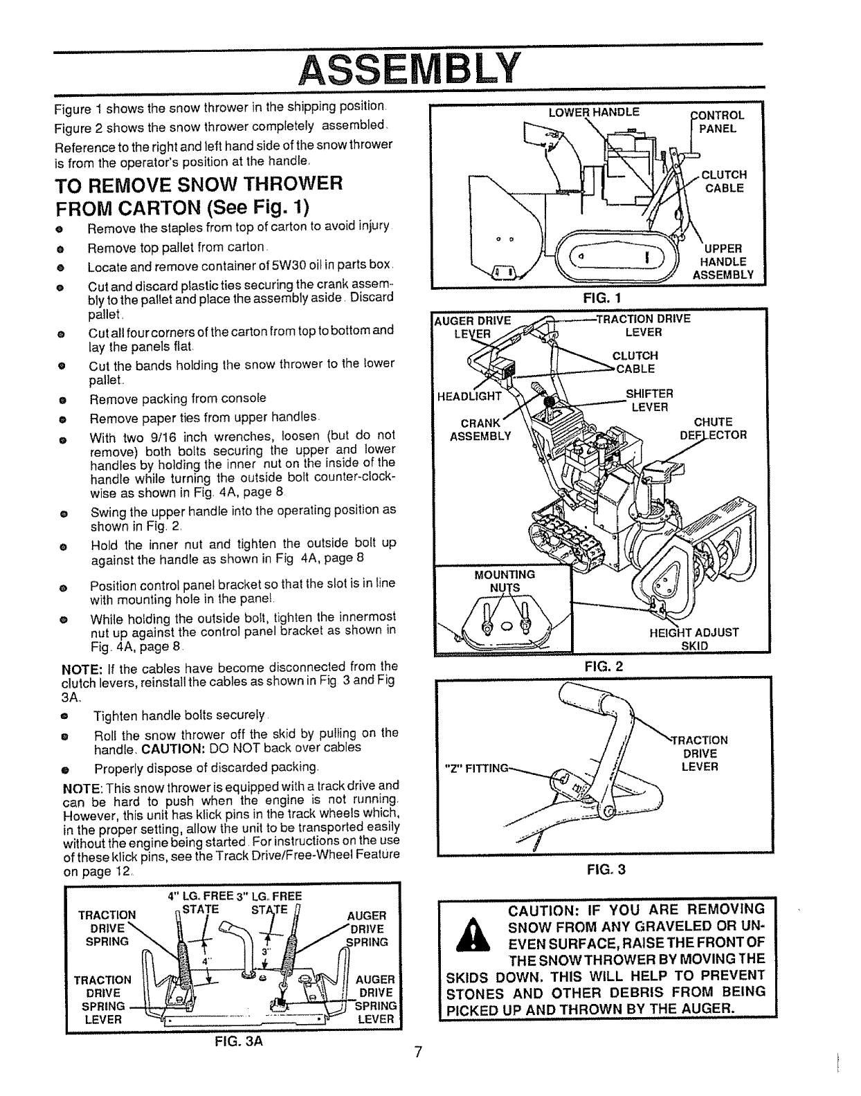 6, Adjust the snow thrower height to clear gravel or