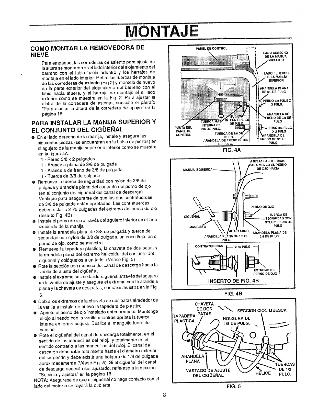 8. Let engine (motor) and snow thrower adjust to