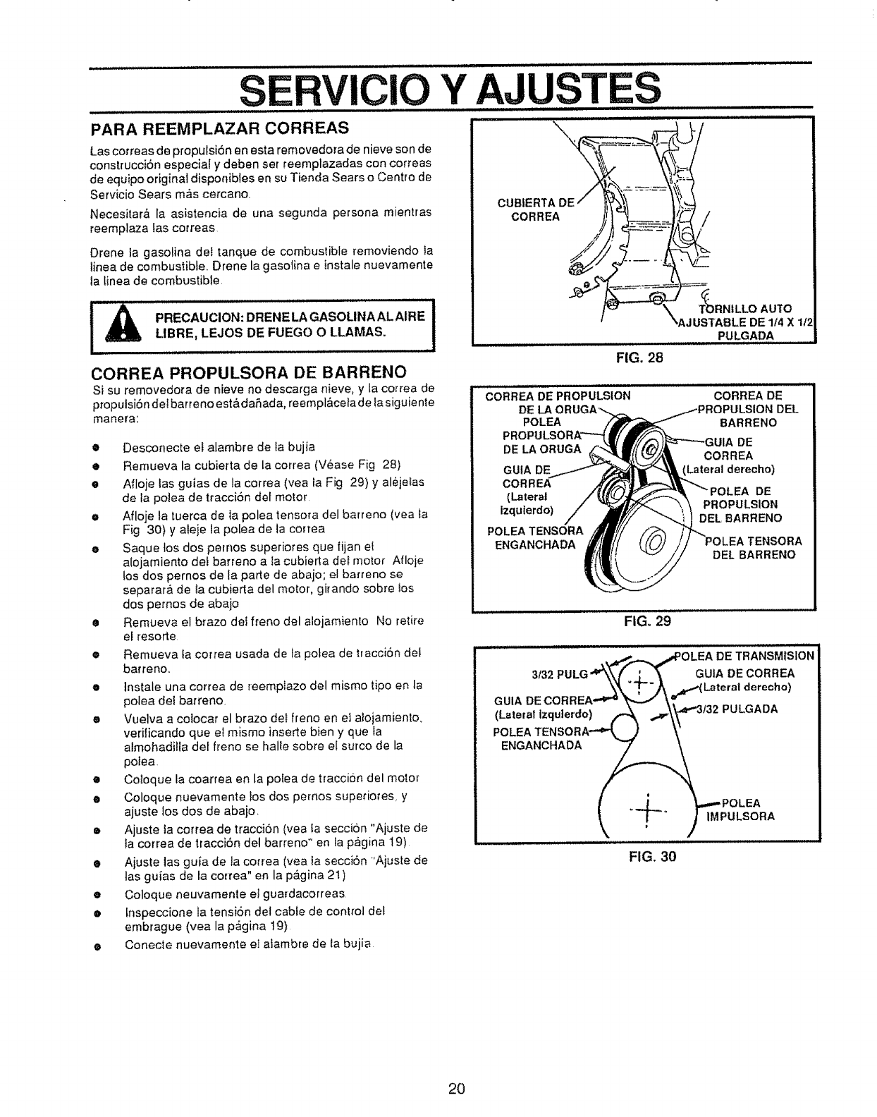 Ajustar la correa de propulsiSn del barreno; reemplazar si