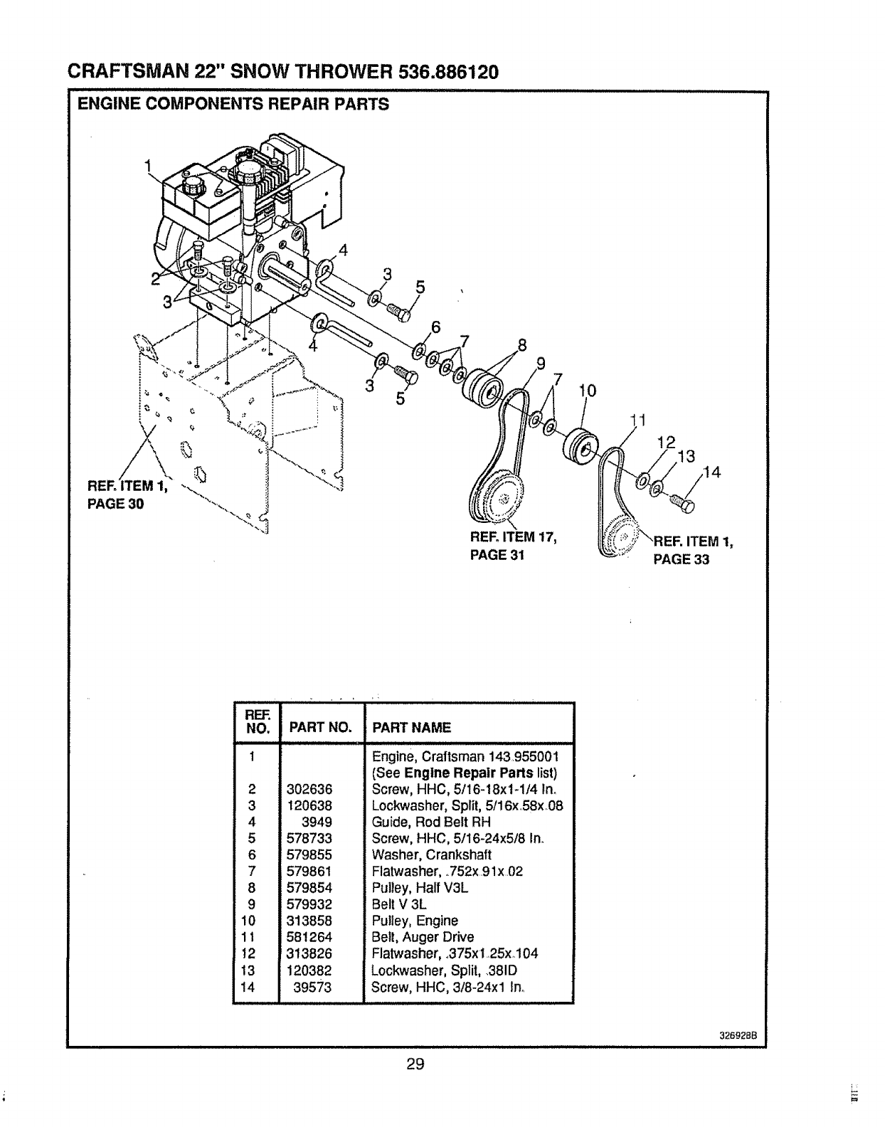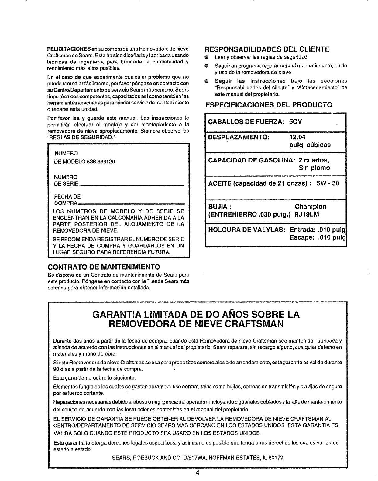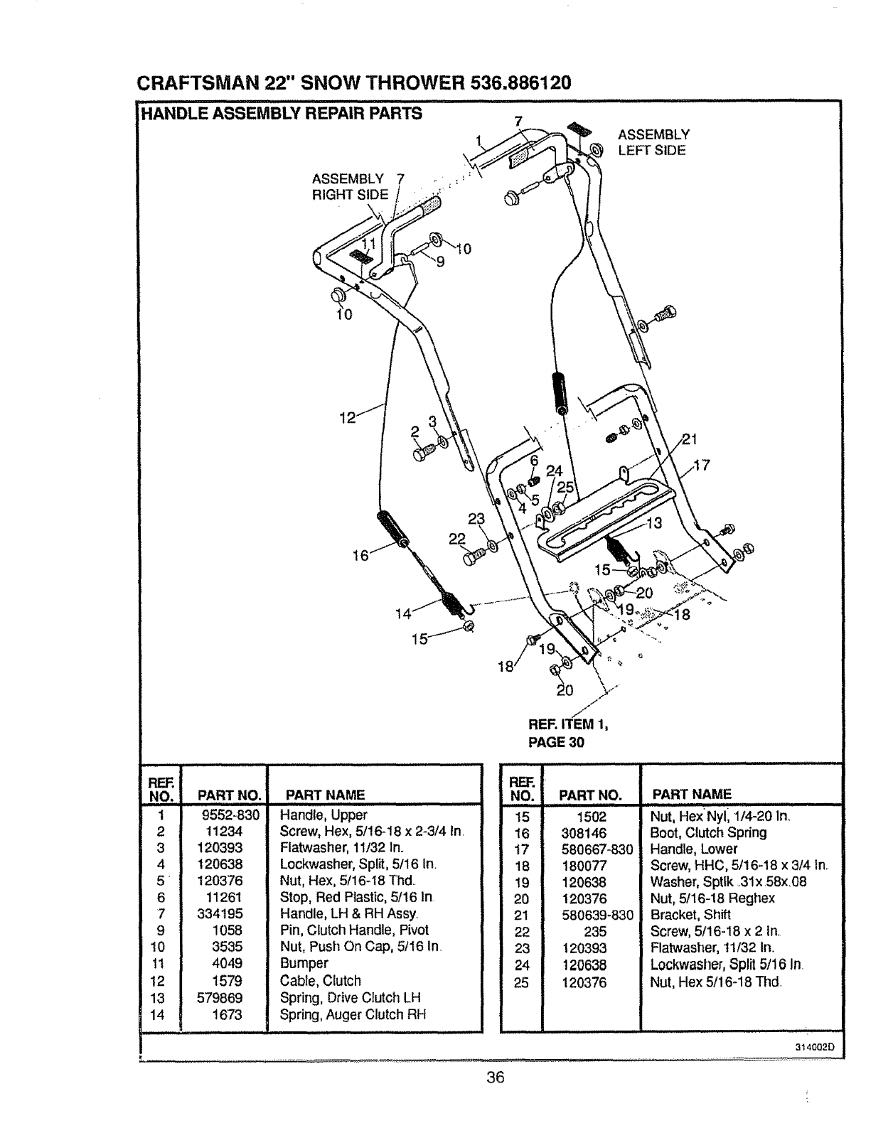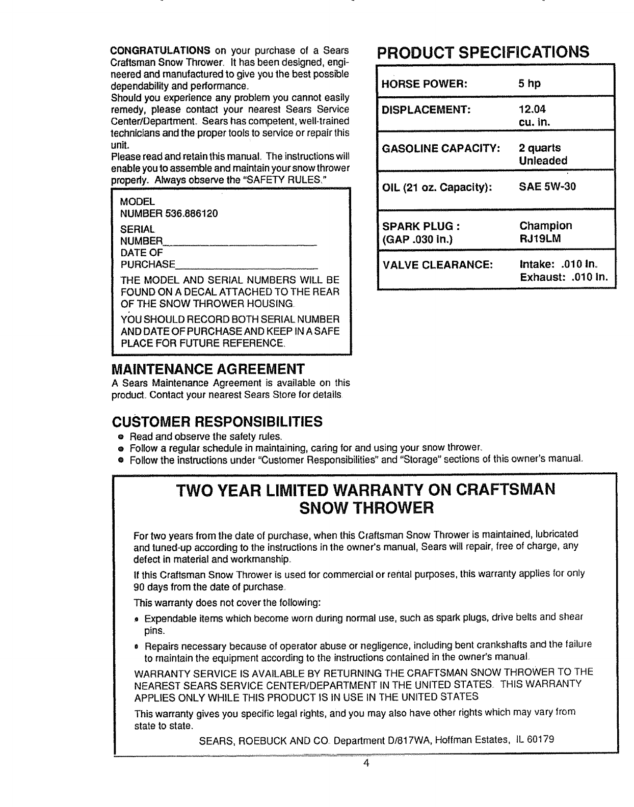 User Manual: Craftsman 536886120 536886120 CRAFTSMAN 5HP 22 SNOW THROWER - Manuals and Guides View the owners manual for your CRAFTSMAN 5HP 22 SNOW THROWER #536886120. Home:Lawn & Garden Parts:Craftsman Parts:Craftsman 5HP 22 SNOW THROWER Manual