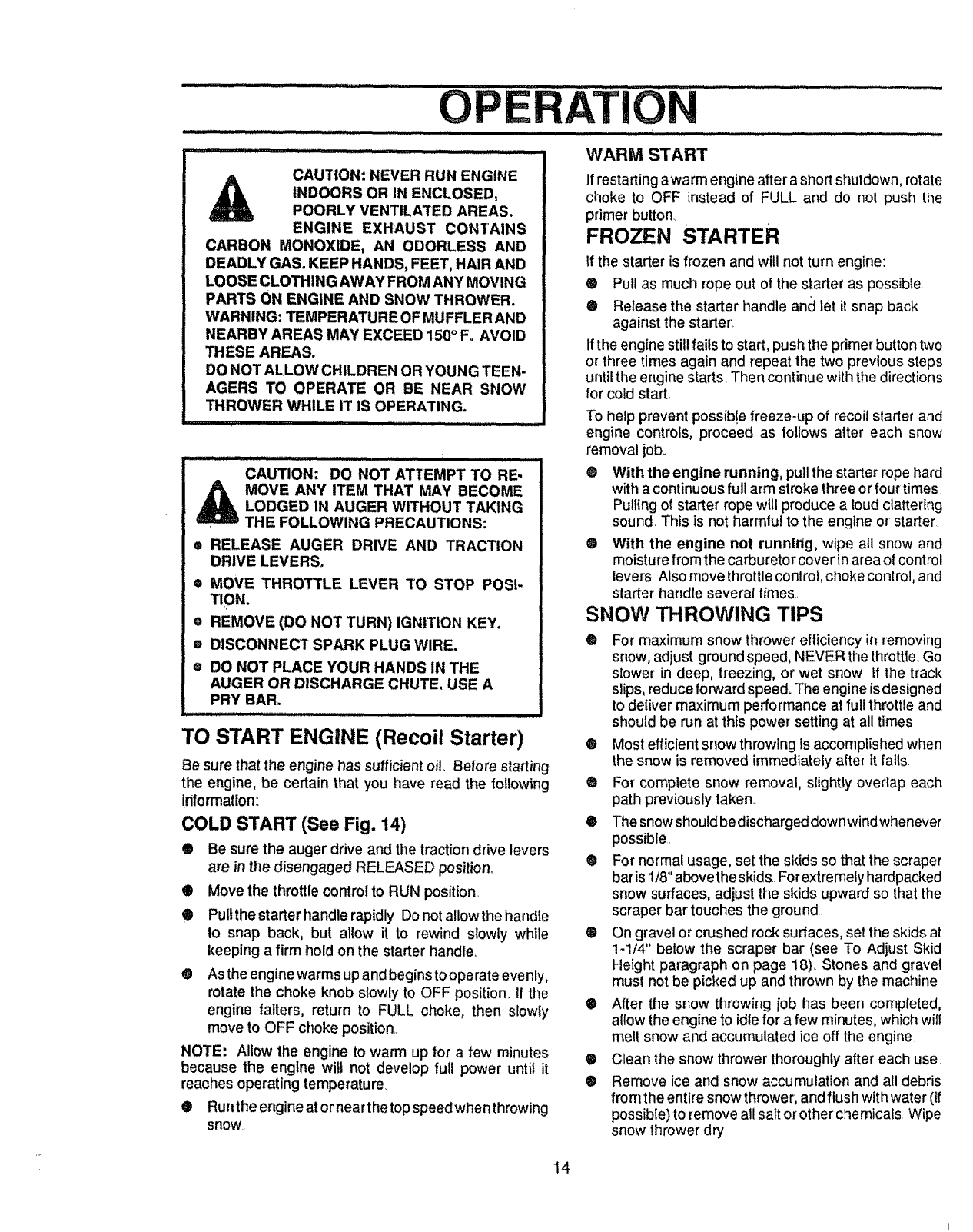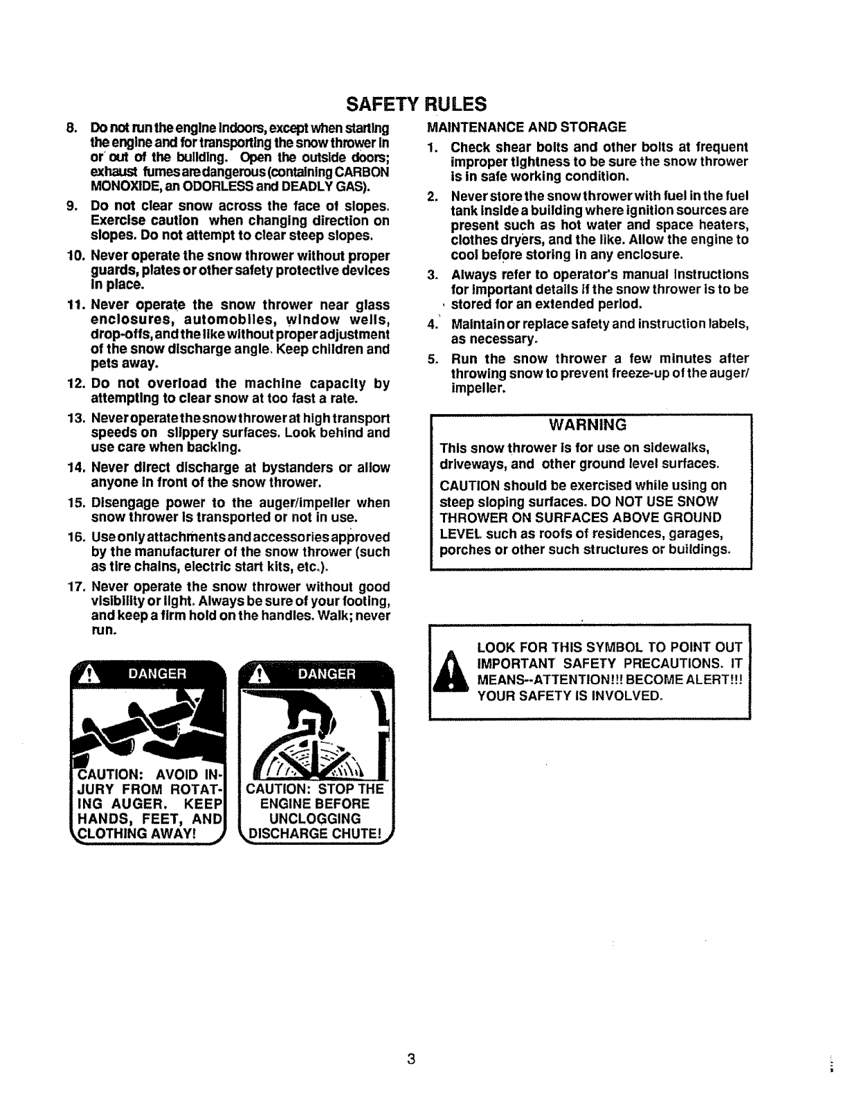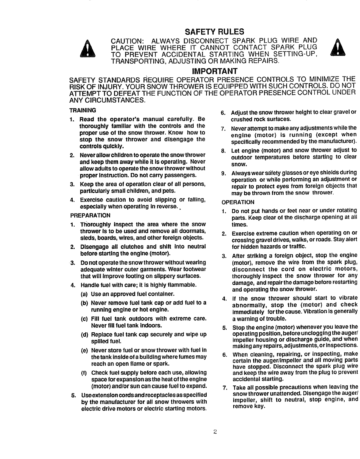 RISK OF INJURY. YOUR SNOW THROWER IS EQUIPPED WITH SUCH CONTROLS. DO NOT