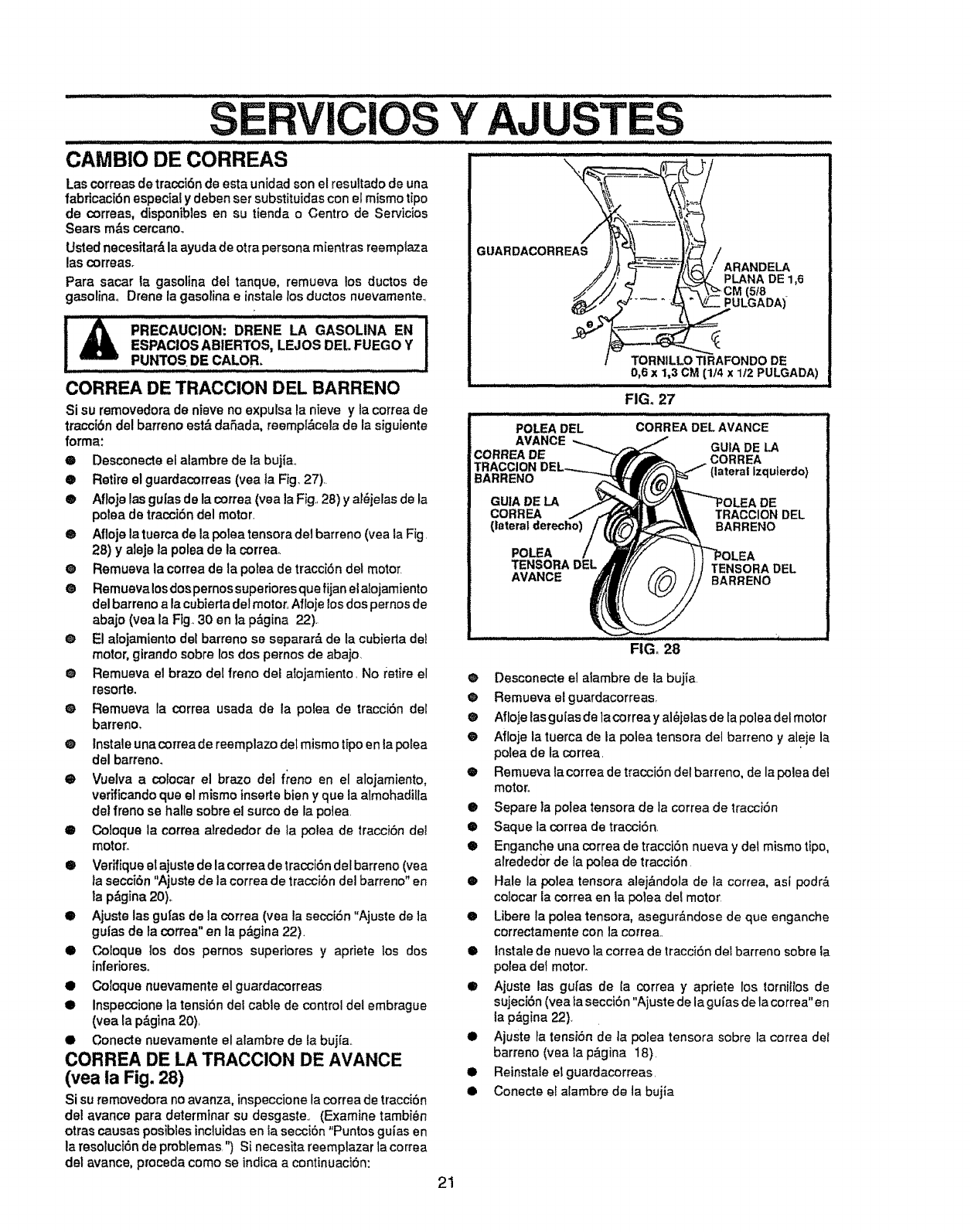 Ajustar la correa de propulsi6n del barreno; reemplazar si