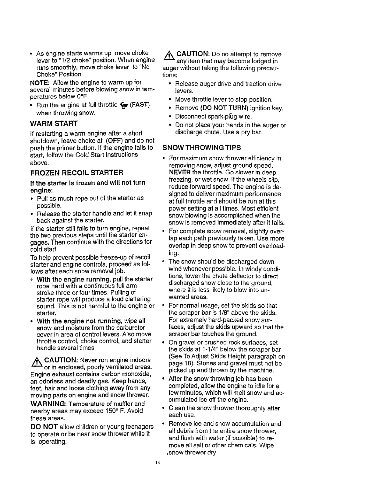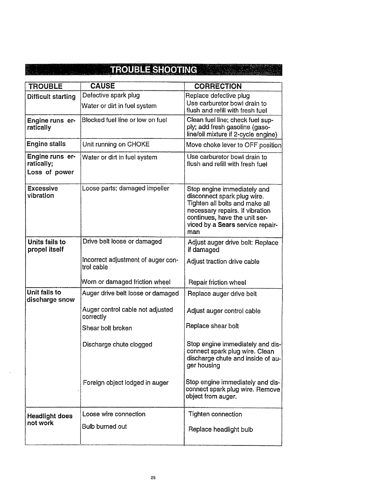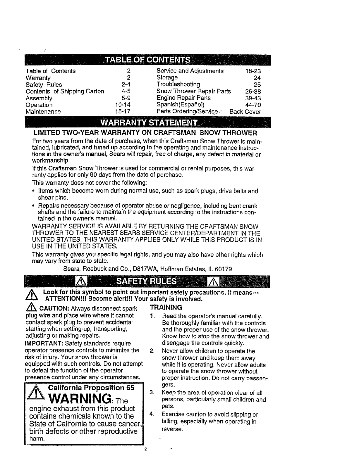 WARRANTY SERVICE 1SAVAILABLE BY RETURNING THE CRAFTSMAN SNOW
