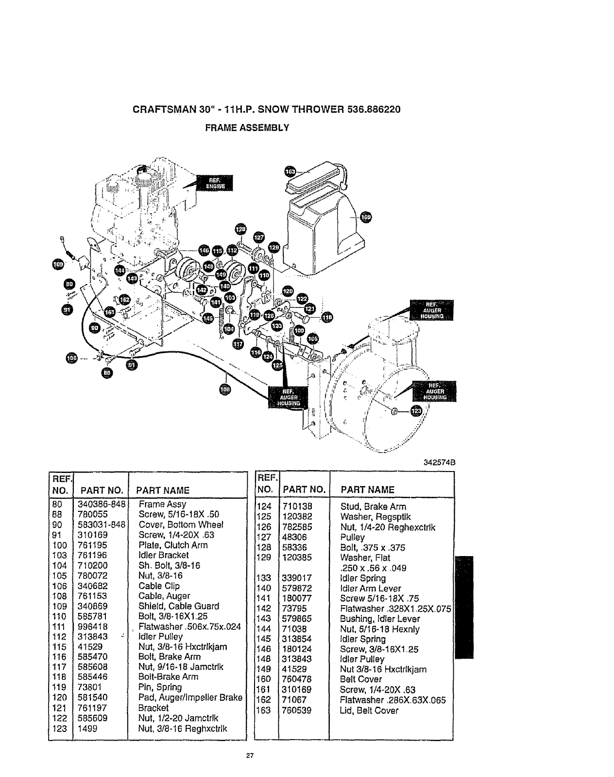 Craftsman 536886220 User Manual SNOWTHROWER Manuals And Guides L0712492
